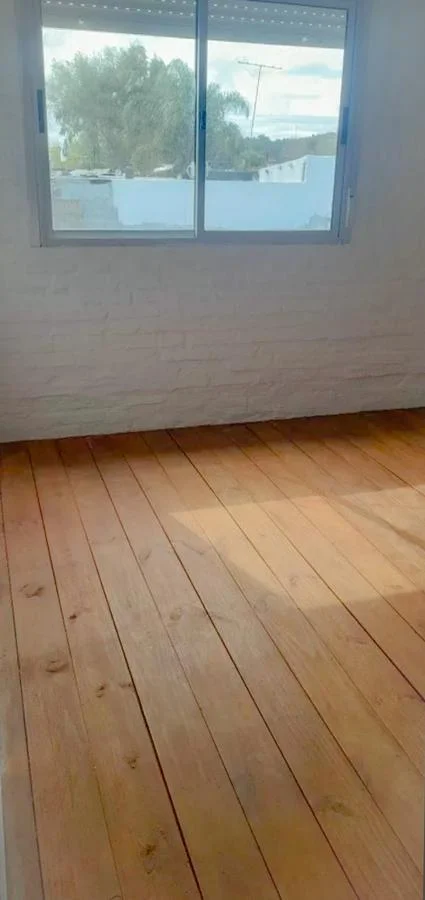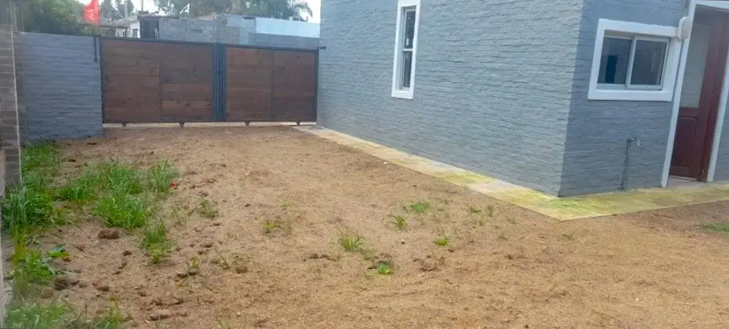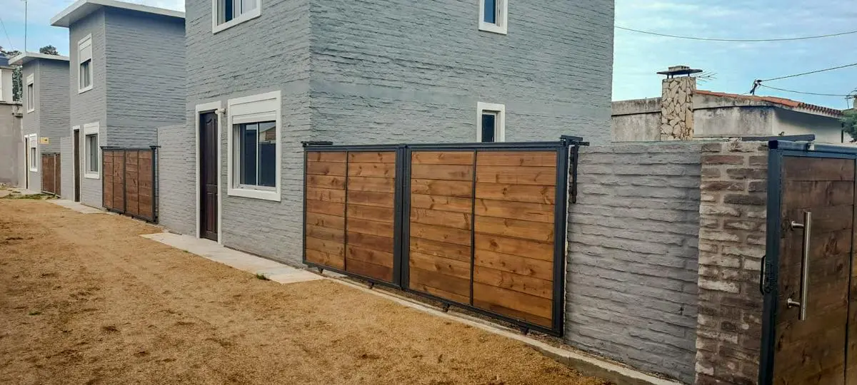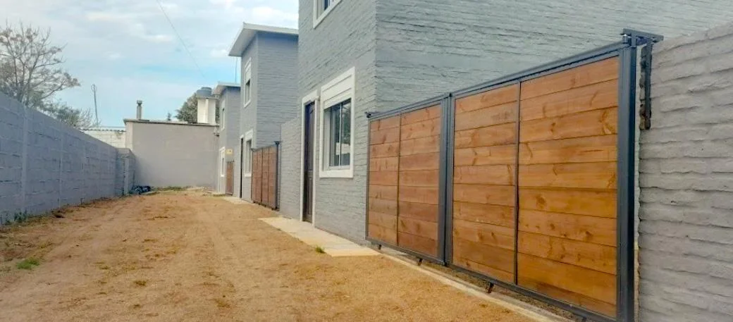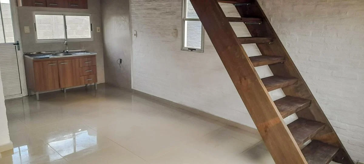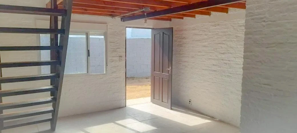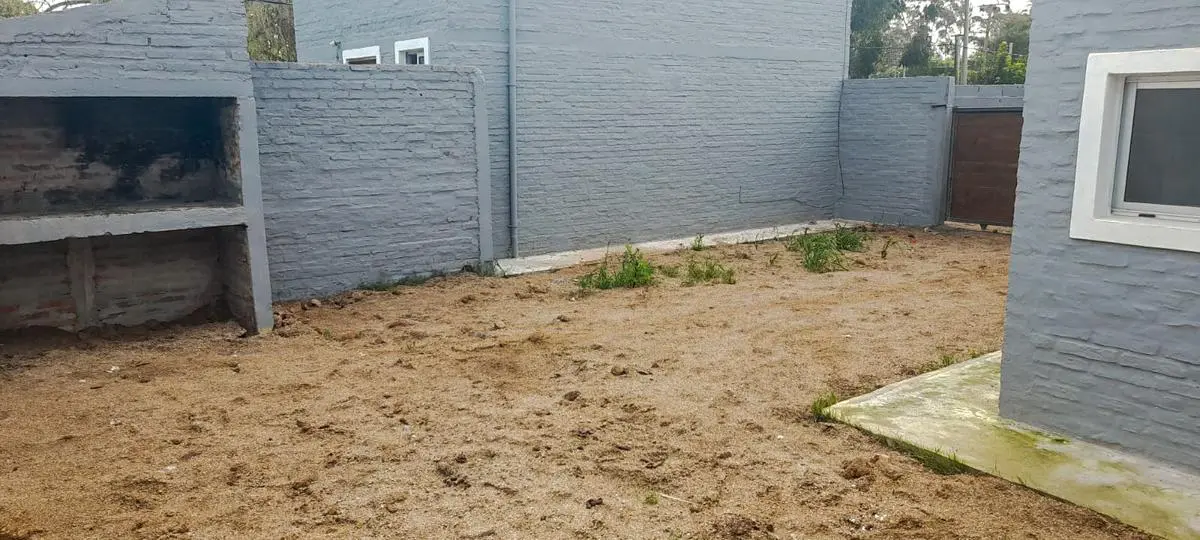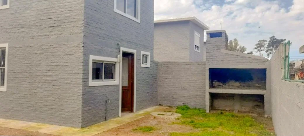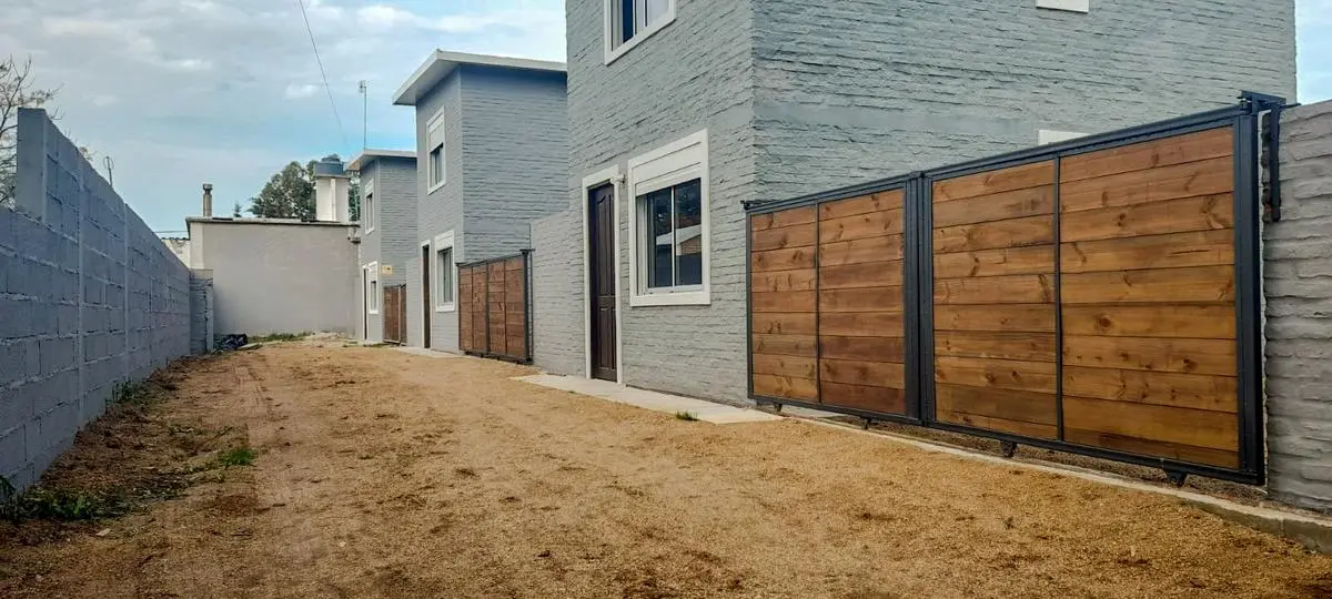 En planta baja, living comedor con cocina integrada y baño completo. En planta alta tiene dos dormitorios luminosos. Gran fondo con parrillero todo cercado con portón corredizo a la entrada de la casa. Contadores independientes y pozo negro individual de cada dúplex. Son tres dúplex en el predio.