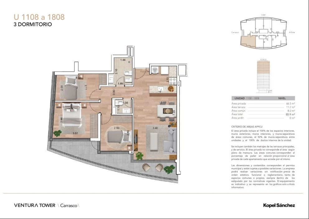 Apartamento de 3 dormitorios en Ventura Tower Carrasco