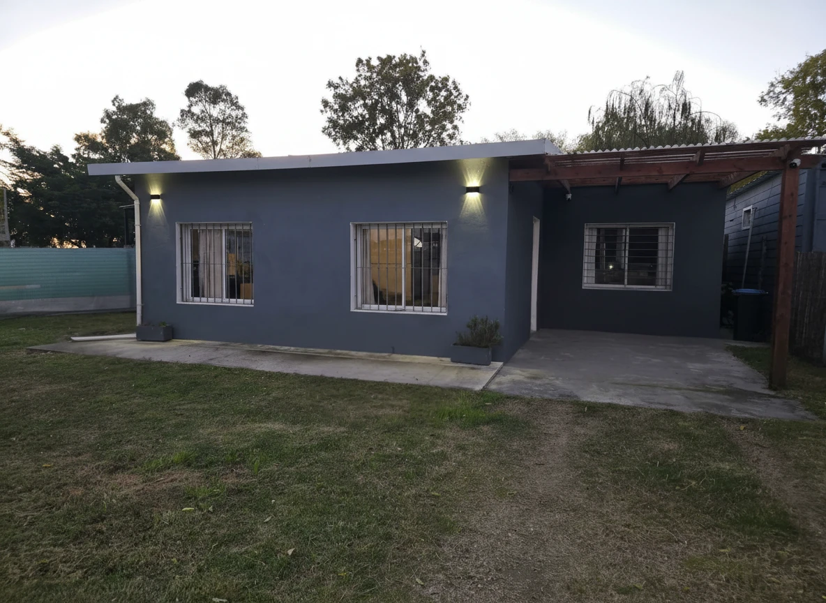 Excelente casa de dos dormitorios; cocina integrada con aéreo y bajo mesada, más lugar para heladera y campana extractora con luz; barra desayunador que divide living comedor de gran tamaño con detalles en las paredes de estantes y luces direccionales; baño completo; fondo con depósito y lugar cerrado para lavarropas; barbacoa con parrillero techada, mucho verde; frente totalmente cerrado de gran tamaño que permite la entrada de varios vehículos con cochera techada. Garantías ANDA, Contaduría, Porto Seguro y Fideciu