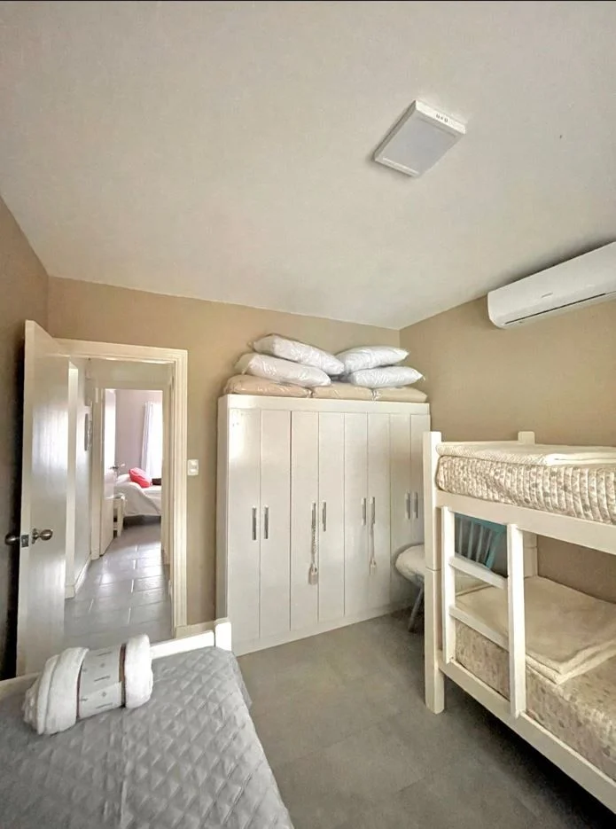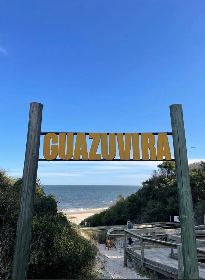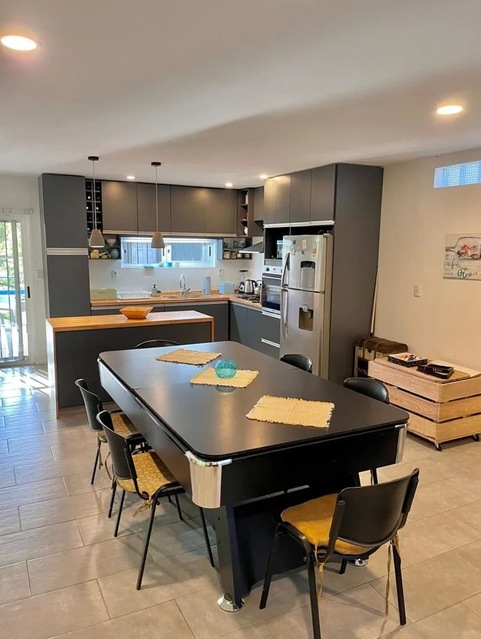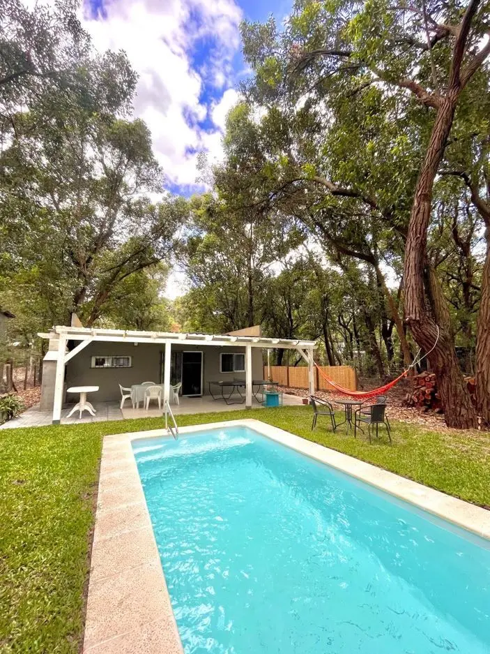 ¡Oportunidad única! Tus mejores vacaciones a 150 metros del mar, en casa de 2 dormitorios, hasta para 7 personas, y piscina climatizada (corazón de la casa), totalmente equipada con muebles, electrodomésticos y vajilla, en Guazubirá, Canelones, en una zona muy tranquila de muchos árboles y verde. A 100 mts de la calle principal y a 100 mts del Emprendimiento El Descubrimiento. Cuenta con 2 dormitorios, -ambos con aire acondicionado- uno con cama matrimonial y placar y el otro con 1 cucheta y 1 cama individual y cómoda y mesa de luz. Amplio living-comedor-cocina integrado con aire acondicionado: Living: 1 sillón-cama (para 2 personas), sillón de 2 cuerpos, 2 sillones individuales, mesa ratona, rack con TV Smart de 55\" con wifi; Comedor: mesa grande con 6 sillas (que se puede adaptar a mesa de pool); Cocina super cómoda y totalmente equipada con heladera con freezer, microondas, anafe, horno eléctrico, lavarropas, calefón y múltiples utensilios de cocina y juego completo de vajilla para 7 personas. Baño completo con mampara de vidrio. Toda cercada, casa muy segura, con rejas en ventanas y puertas. Al frente espacio para estacionamiento de hasta 3 o 4 autos y al fondo deck con parrillero techado y cerrado y la piscina climatizada. En el deck exterior se dispone de una mesa ping pong. Alarma con respuesta. Disponible a partir del 20 de diciembre. Precio: US$ 200 dólares más consumos de luz y agua, mínimo 7 días de alquiler . Caracteristicas: APTO PARA FAMILIAS/NI?OS, CONEXI?N A INTERNET, PERMITE MASCOTAS, CALEFON, COCINA, HELADERA, LAVARROPAS, MICROONDAS XINTEL (IGR-IGR-1044)