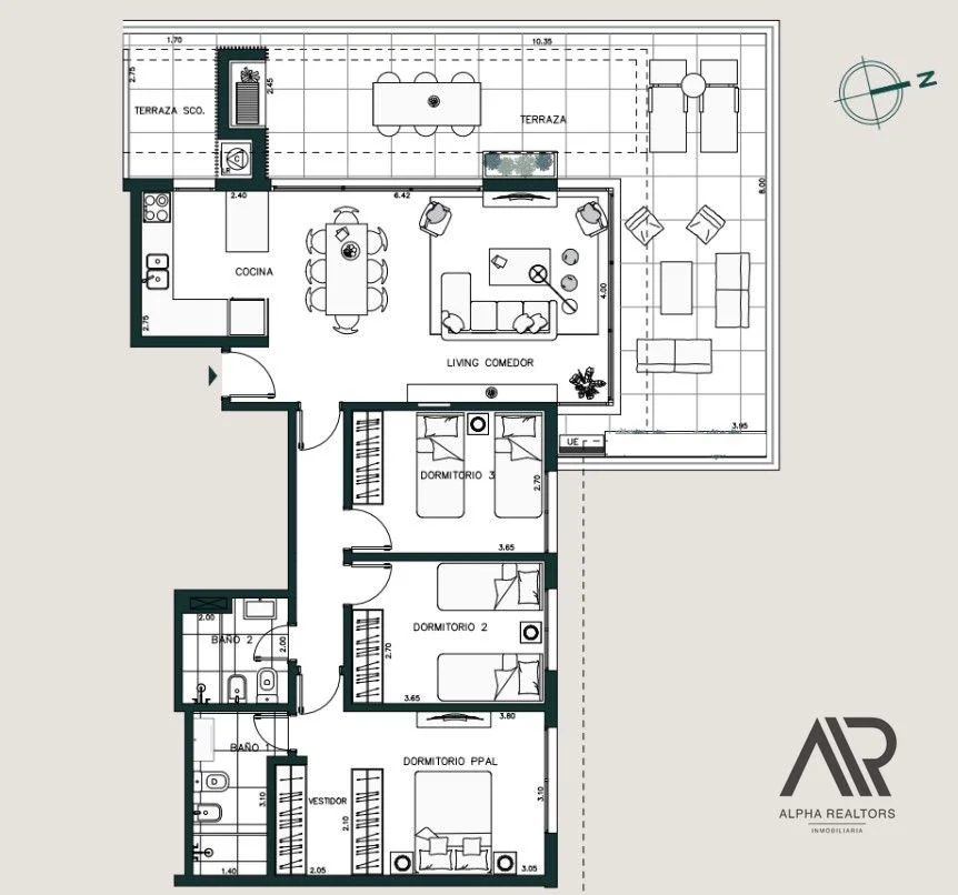 Cuenta con un cómodo estar comedor con cocina integrada y salida a amplia terraza con parrillero; 3 dormitorios, uno de ellos en suite y otro baño completo.