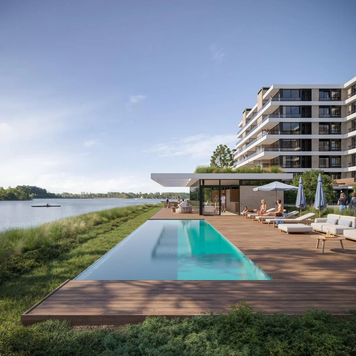 Distrito Boating redefine la experiencia de vivir junto al lago. Tres torres de diseño exclusivo albergan 123 apartamentos de 1, 2 y 3 dormitorios, cada uno con amplias terrazas y vistas abiertas al Lago Calcagno. Los interiores, modernos y funcionales, se integran de manera armónica con el entorno natural, brindando luminosidad, confort y sofisticación en cada detalle.