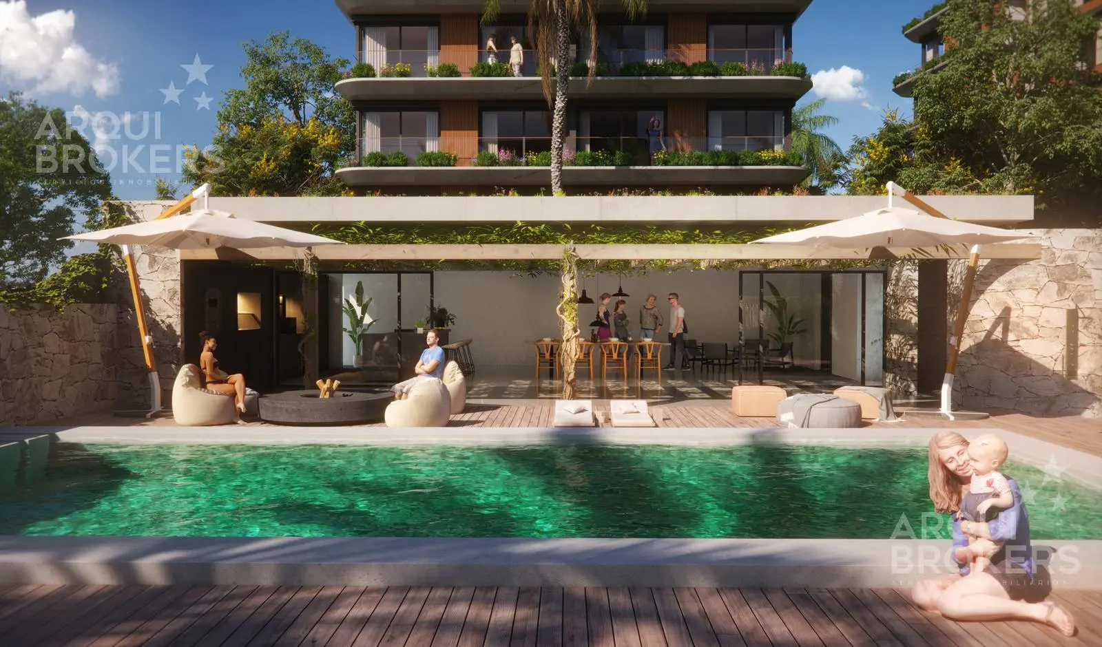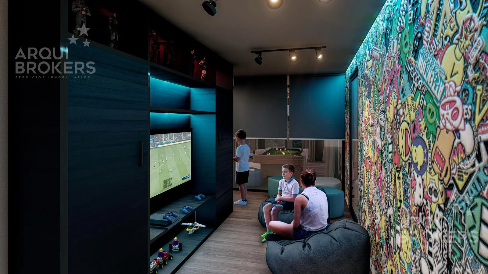 AMENITIES: barbacoas (Marea Bar y Paladar Bar) Ubicadas en Rooftop, players Area, gimnasio externo e interno, kids Club externo e interno, pool Bar y Solarium, piscina exterior, loundry, bike Garaje, pick Up Lockers y handyman Rooms.