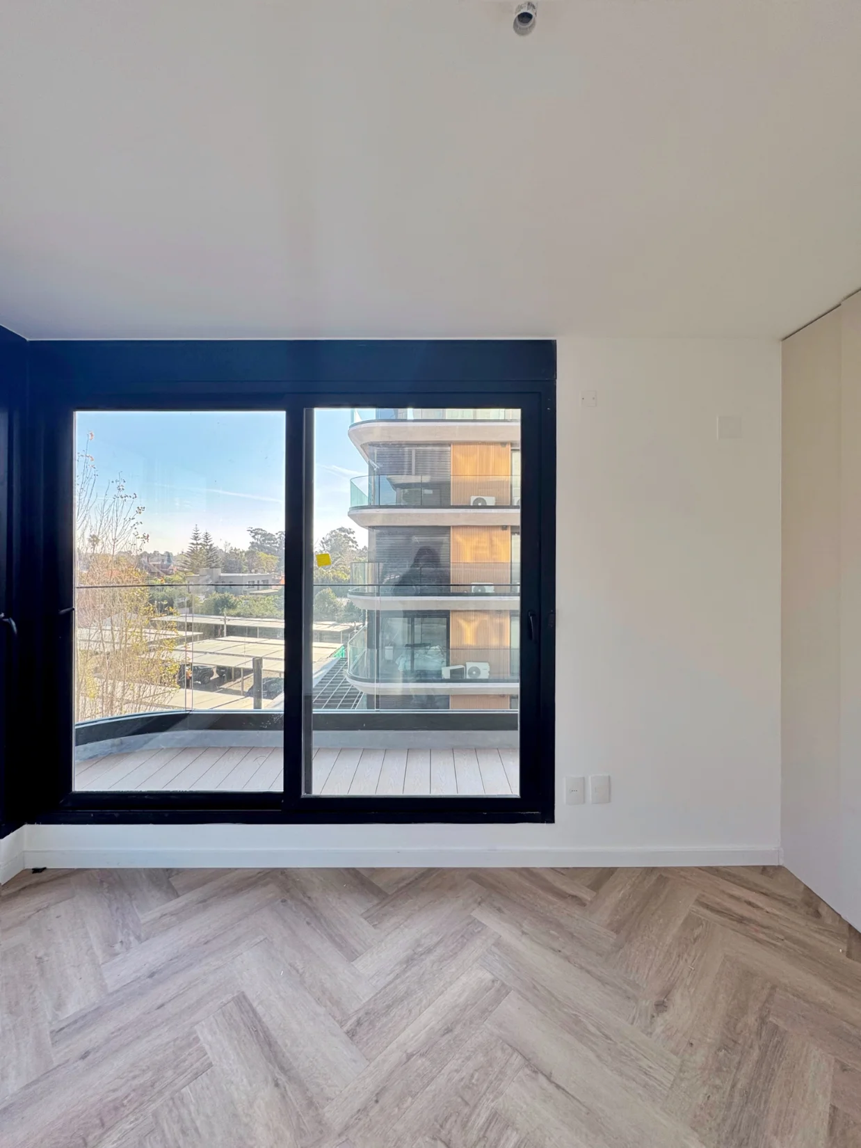 Cuenta con living-comedor, terraza, cocina integrada, con mobiliario bajo mesada y aéreos. Equipado con horno, anafe y campana. Baño equipado con accesorios y mampara. Previsión para lavarropas y calefón. Pisos de vinílico de alto tránsito Verona y cortinas de enrollar motorizadas.