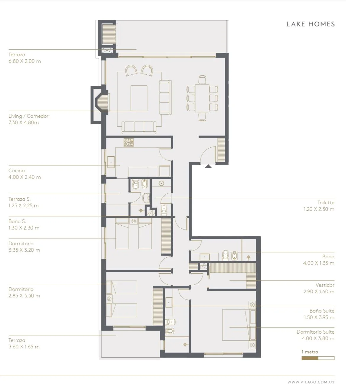 Alquiler de apartamento en edificio Vilago sobre Av. de las Américas.Nuevo en el mercado. Para ocupar en enero 2026.Hall de entrada, living y comedor con estufa a leña, amplia terraza con parrillero y una divina vista al lago.Cocina con doble mesada, terraza lavadero y baño de servicio.Baño social.Tres dormitorios y 2 baños, principal en suite con vestidor. Todos los dormitorios con buenos placares.Calefacción por losa radiante a gas por caldera Baxi.Se alquila con cortinas, algunos artefactos de luz, horno, anafe y campana.Previsión de AA en todos los ambientes.Dos cocheras, una atras de la otra. Amplia Baulera El edificio cuenta con vigilancia 24 hrs presencial y seguridad y portería virtual, cámaras de seguridad y amenities: Gimnasio, parrillero comun, piscina.Gastos comunes $ 18000 por mes.No incluye mueblesDisponemos de Llaves (CW202226)