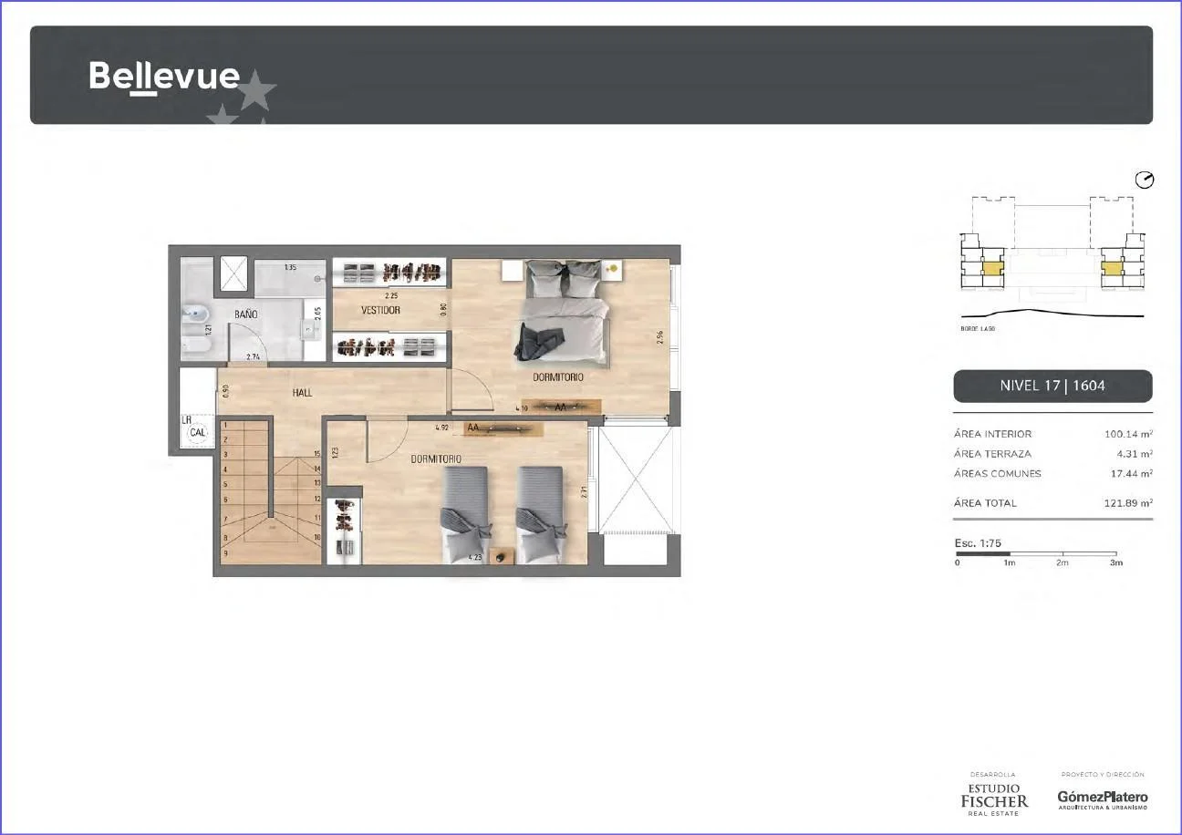 Apartamento dúplex en piso 16 y 17 con orientación norte.