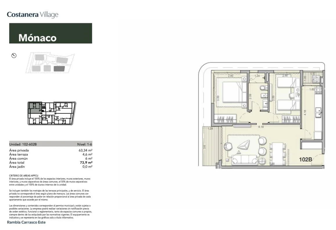 Apartamento a estrenar 2 dormitorios con orientación noroeste en piso 6.