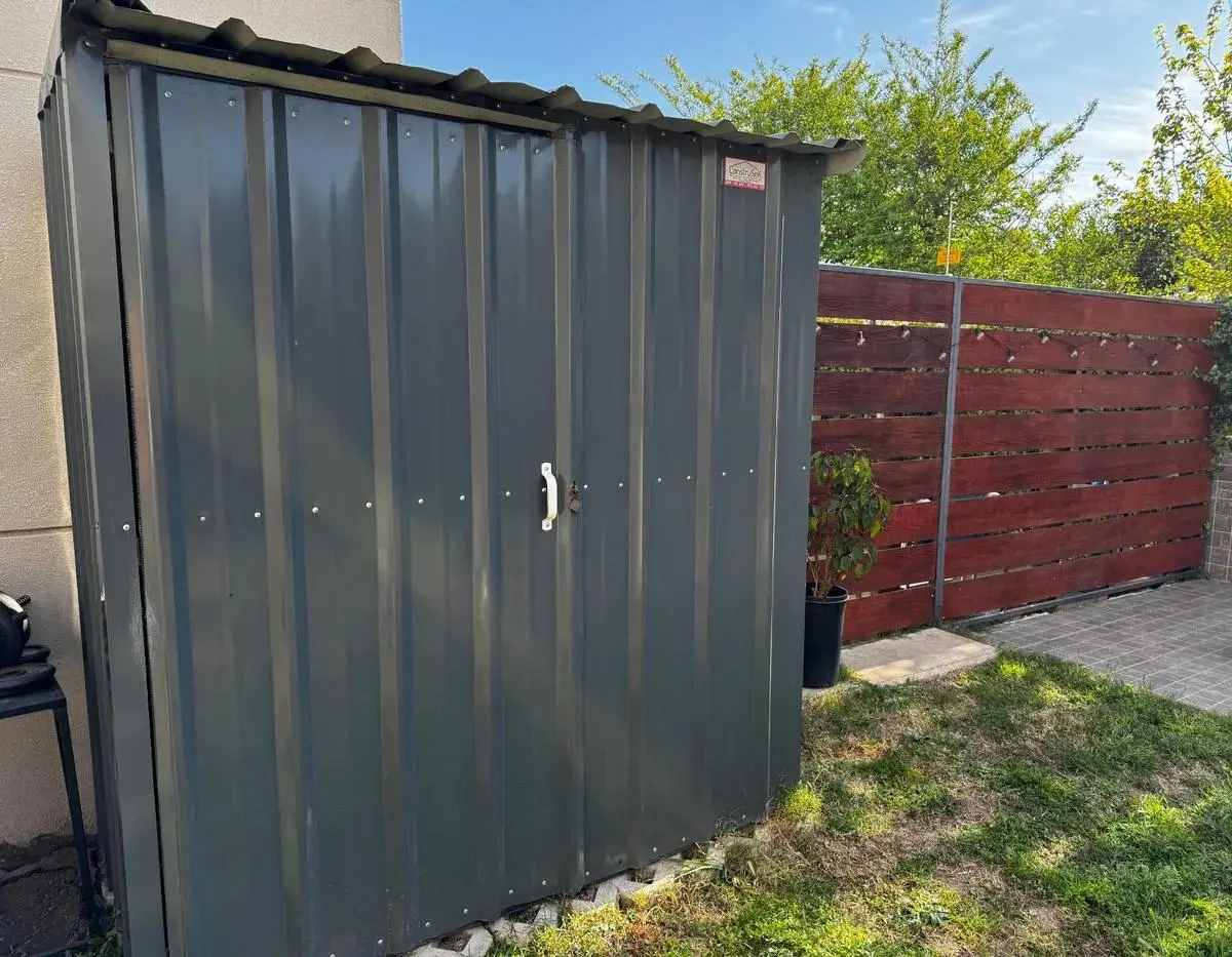 En planta baja cuenta con un amplio estar con aire acondicionado, ventanal corredizo hacia el patio que aporta gran luminosidad y barra desayunador integrada a la cocina. La cocina está equipada con muebles bajo y sobre mesada, extractor, espacio para lavarropas y garrafa en patio cerrado, además de una práctica alacena bajo escalera. El patio privado es amplio, con parrillero, caseta-galpón con candado y espacio para dos autos.