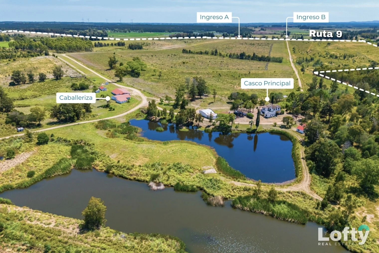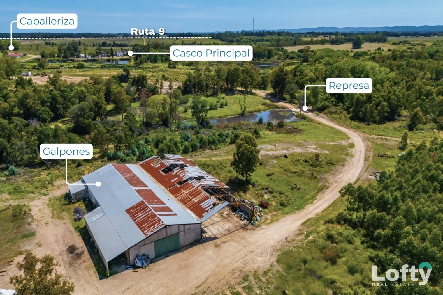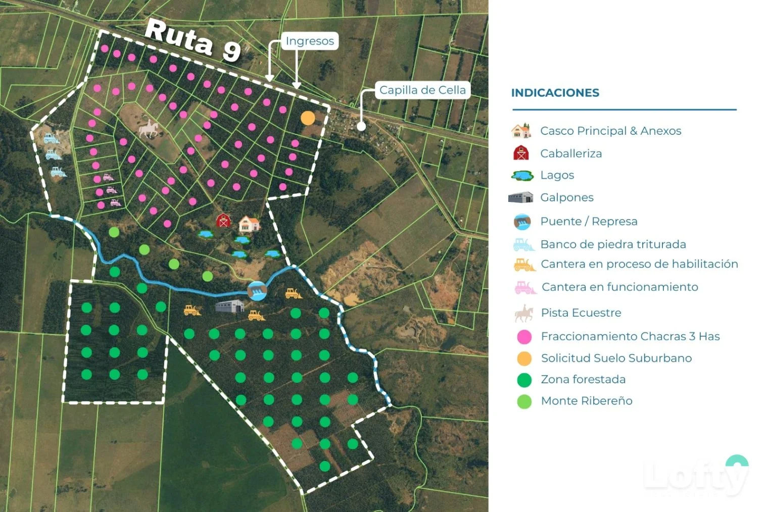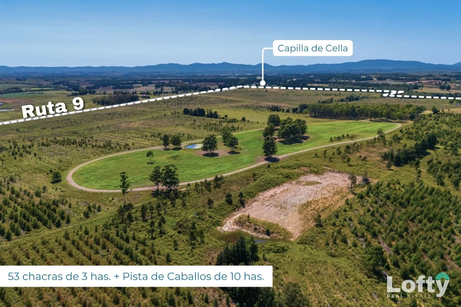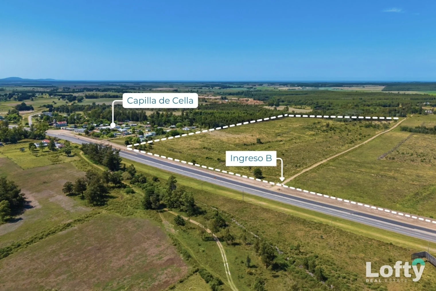 Establecimiento rural de 487 hectáreas, con 1,76 km de frente sobre Ruta 9 (Km 73), junto a Capilla de Cella, departamento de Canelones, Uruguay. Su ubicación se ve especialmente potenciada por la reciente ampliación de la doble vía de Ruta 9 y por el puente intercambiador que vincula Ruta 9 con Ruta 8, mejorando de forma sustancial la conectividad.