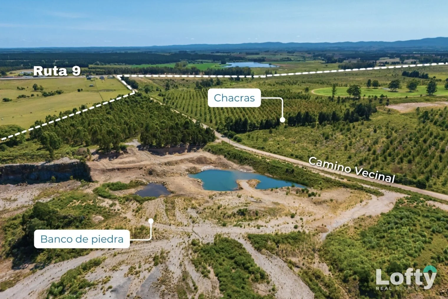 El predio cuenta actualmente con una cantera activa que abarca las chacras 51, 53 y 55, desde donde se está extrayendo material destinado a la ampliación de la doble vía de la Ruta 9 y, en una etapa posterior, para obras en la Ruta 70.
