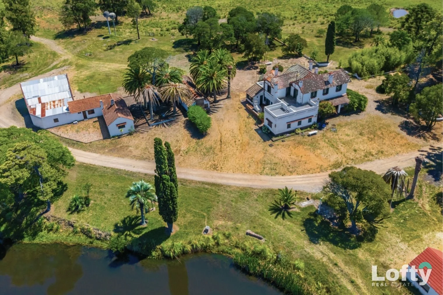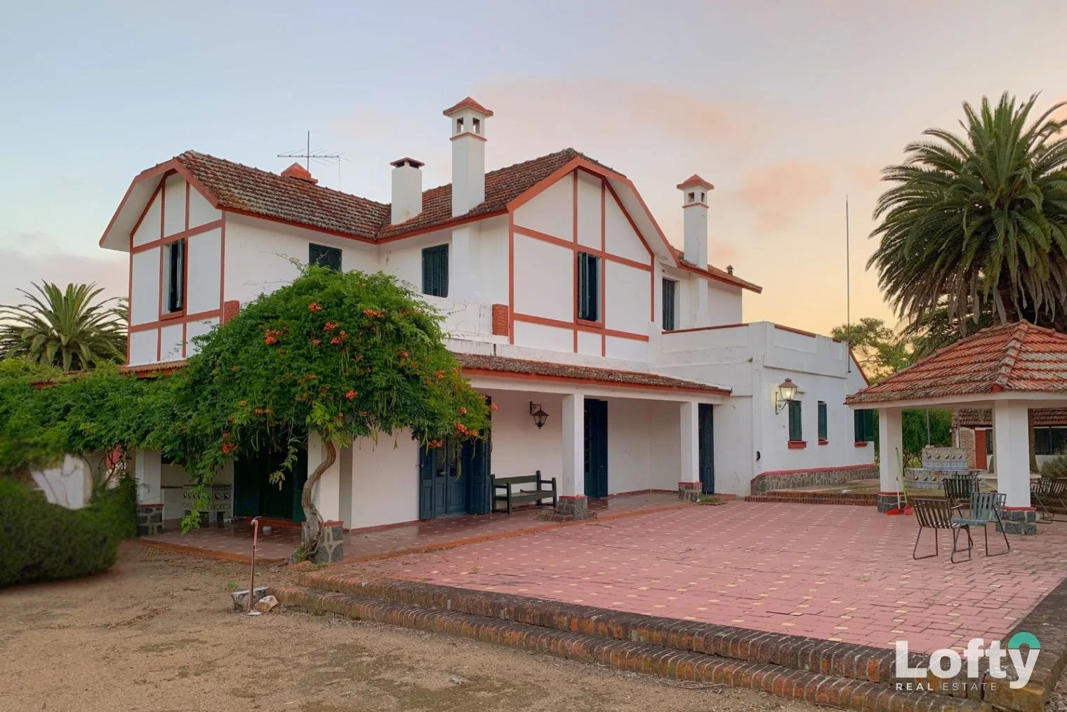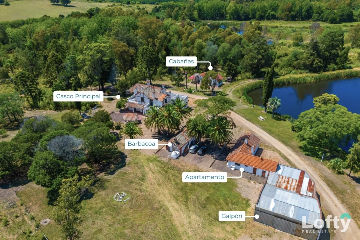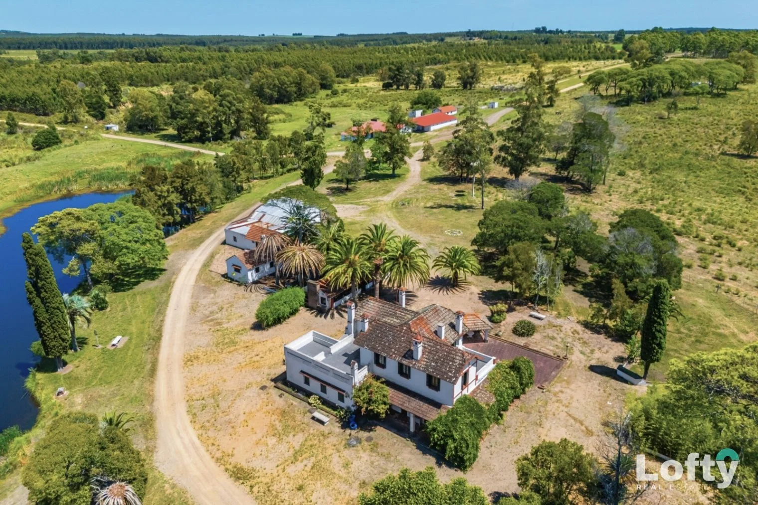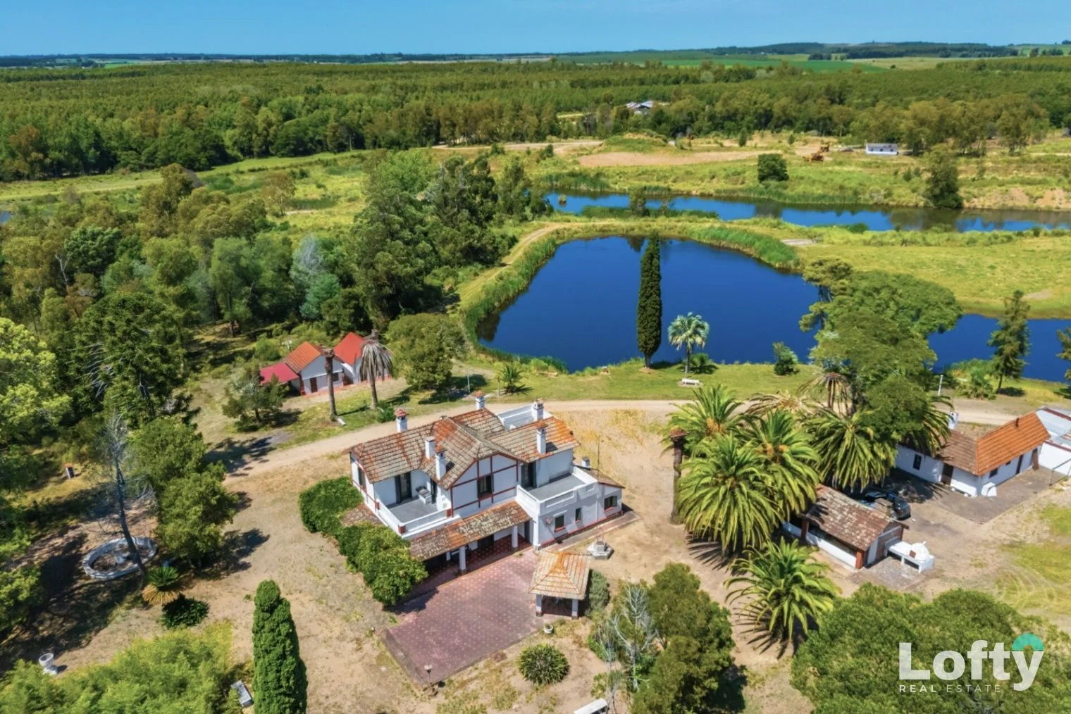 Casa quinta de estilo colonial, de imponente presencia, implantada en un entorno natural arbolado, al pie de las lagunas, ofreciendo un marco paisajístico privilegiado.