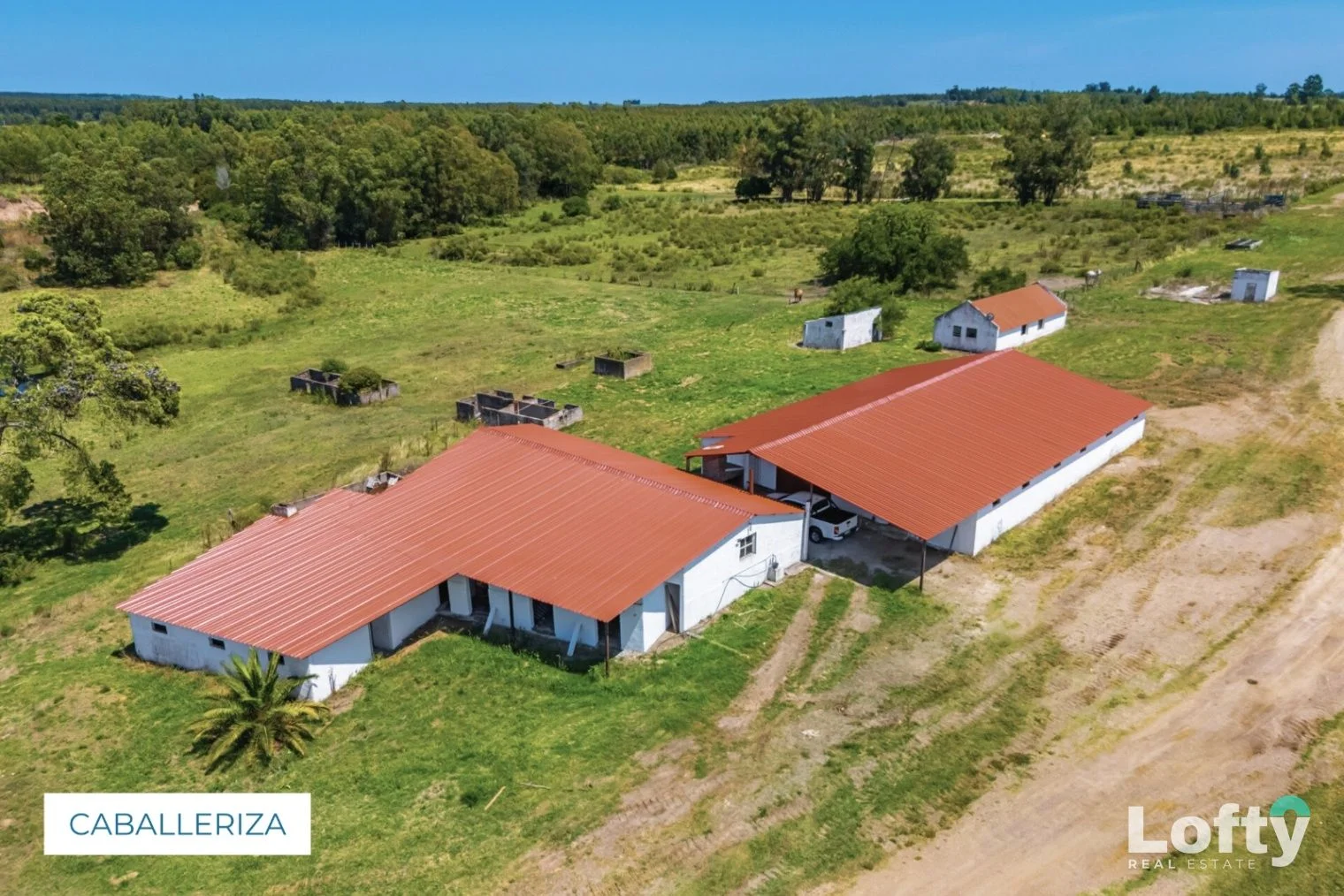 El establecimiento cuenta con infraestructura destinada a actividad hípica, incluyendo una caballeriza con varios boxes (a actualizar) y vivienda para cuidador, lo que permite reactivar o desarrollar un emprendimiento ecuestre con base operativa ya instalada. Históricamente, en el predio se brindaba servicio integral de cuidado, alimentación y entrenamiento.