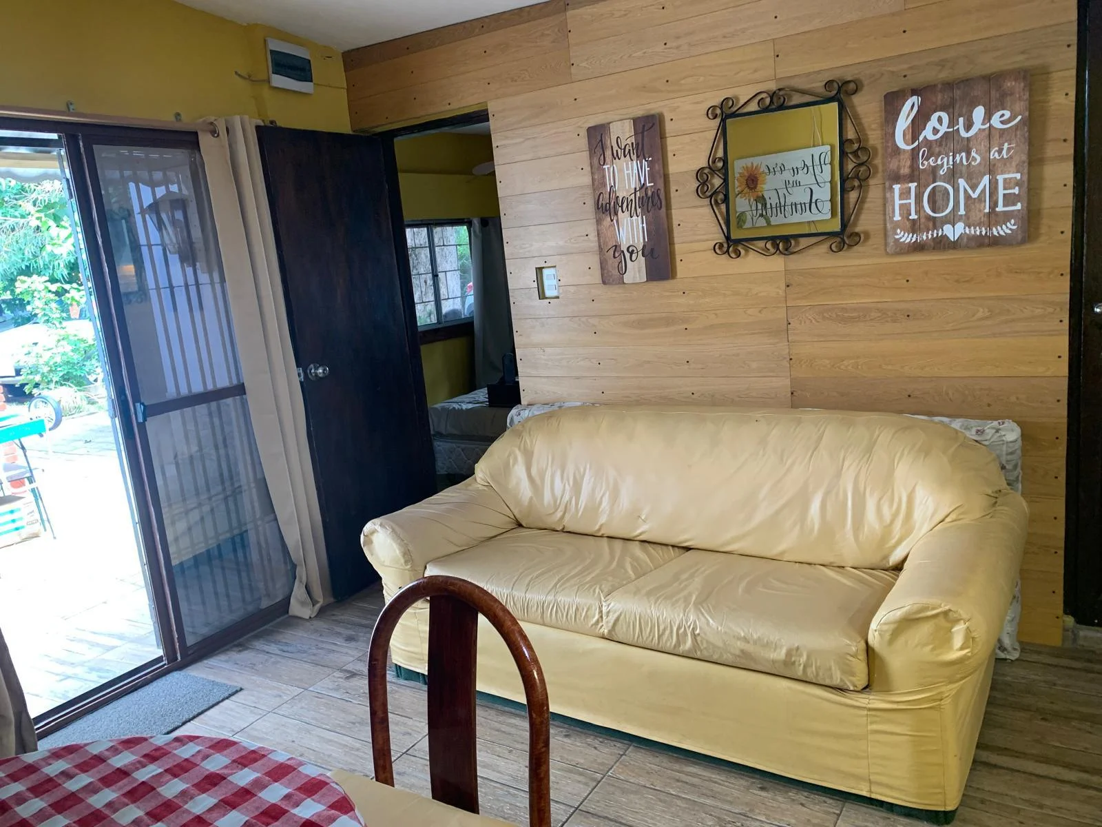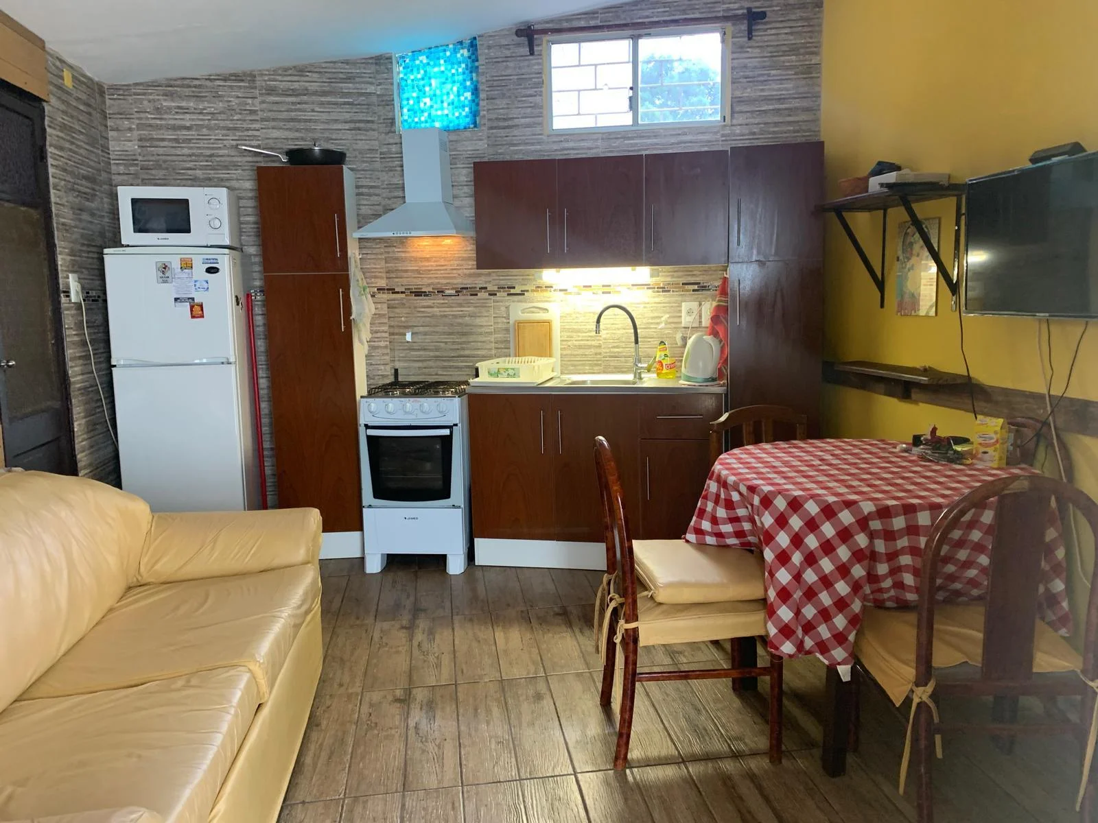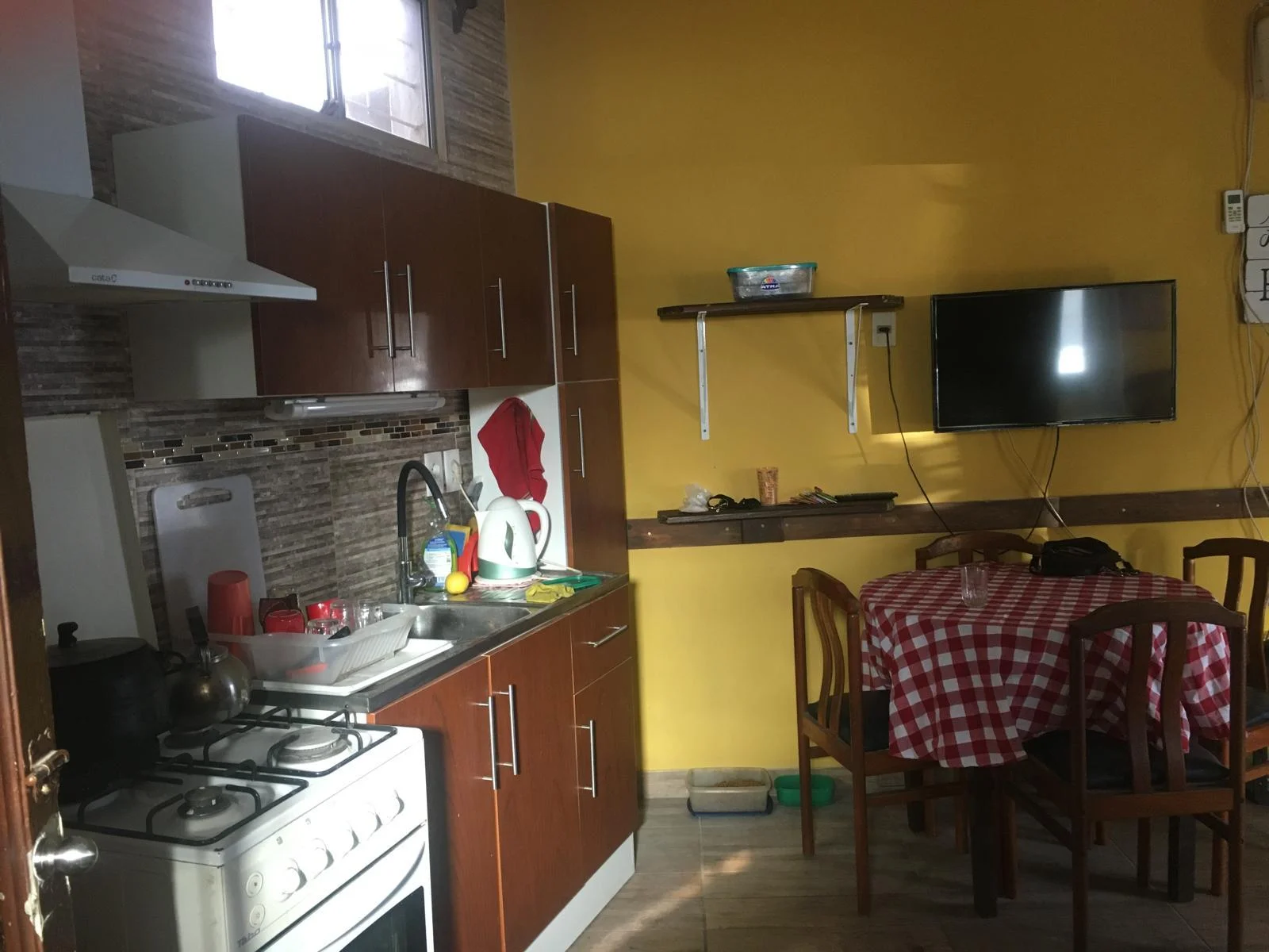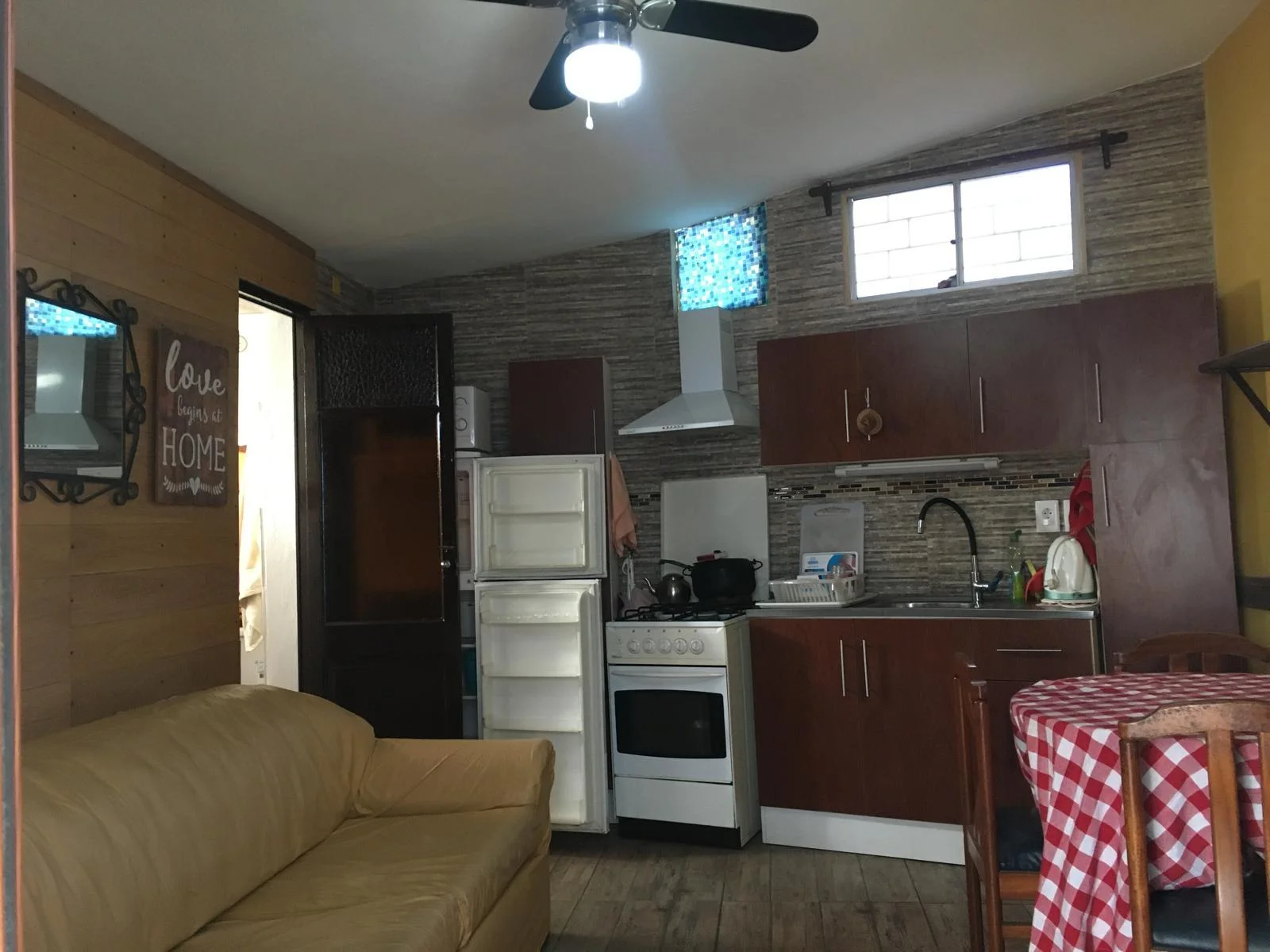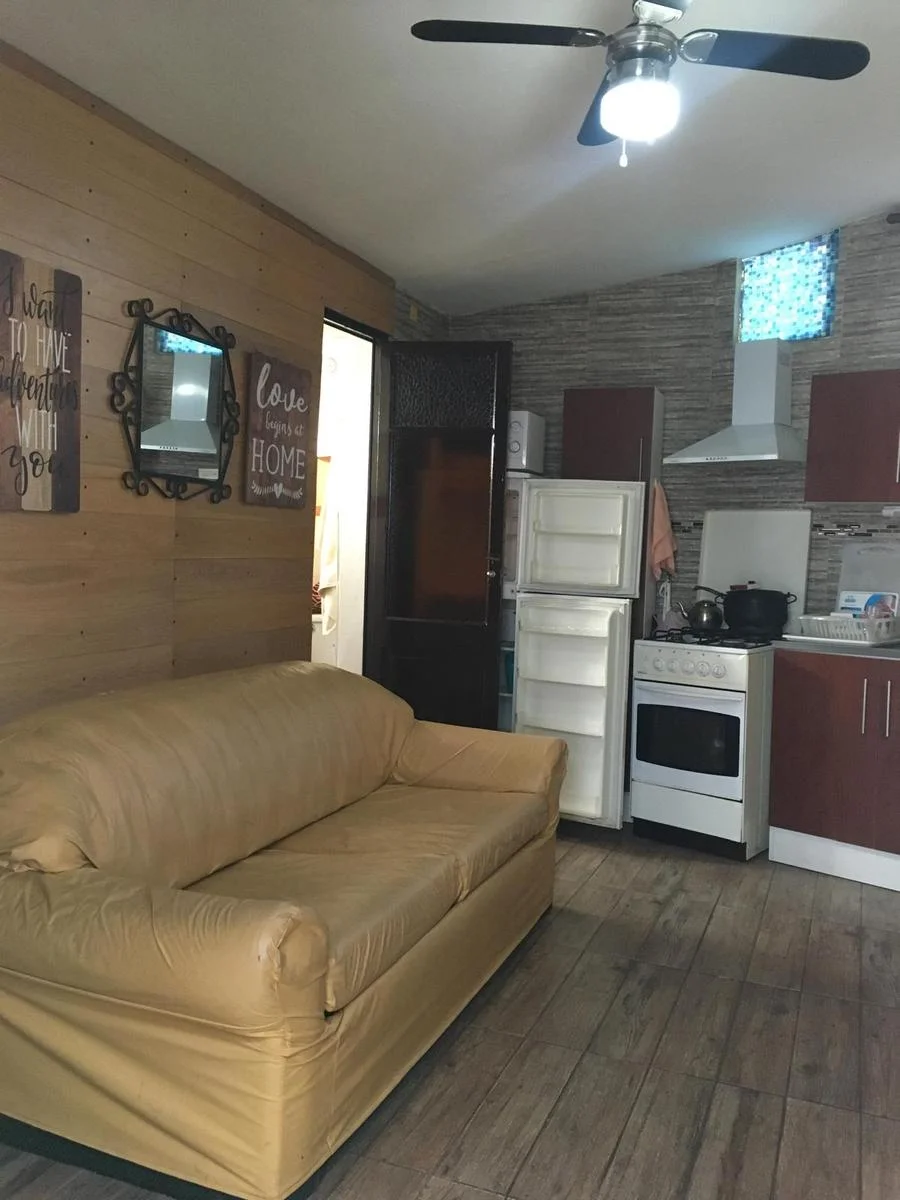 Living comedor abierto integrado a la cocina donde espacio para sofá cama. El predio tiene 200 metros espacio para estacionar un coche.