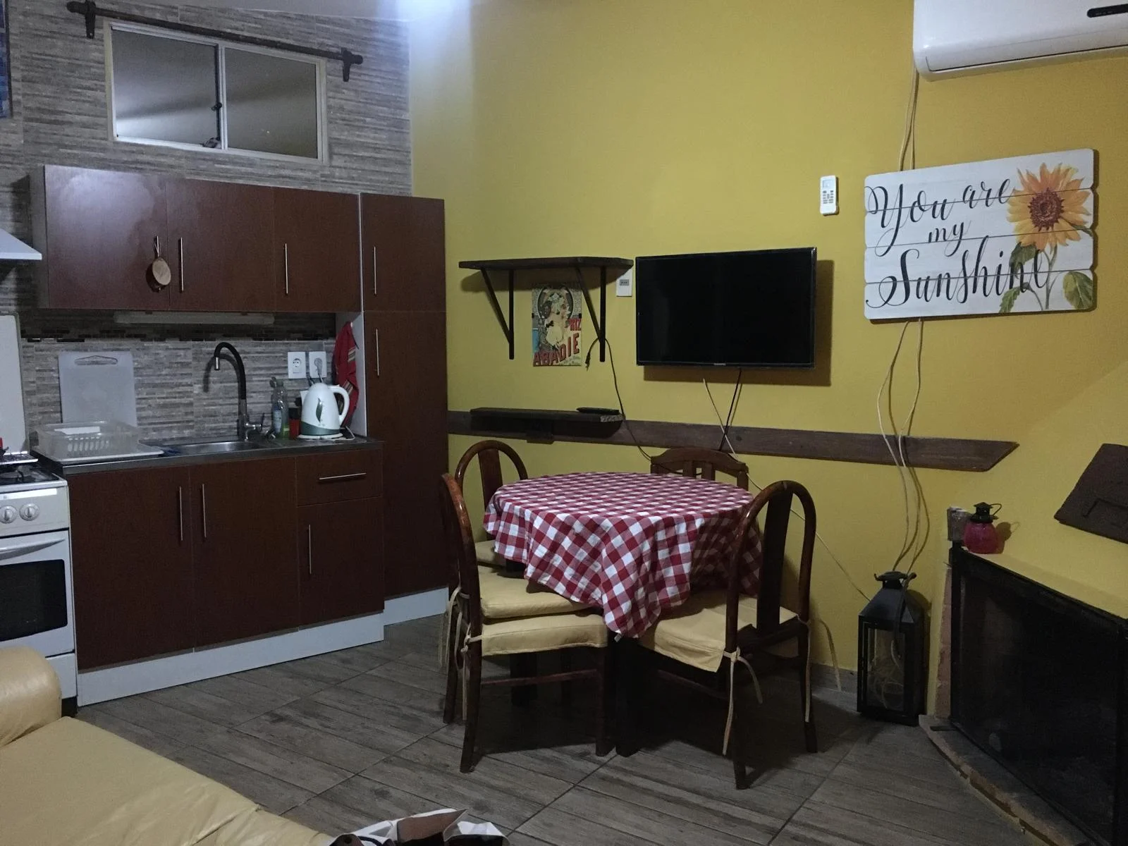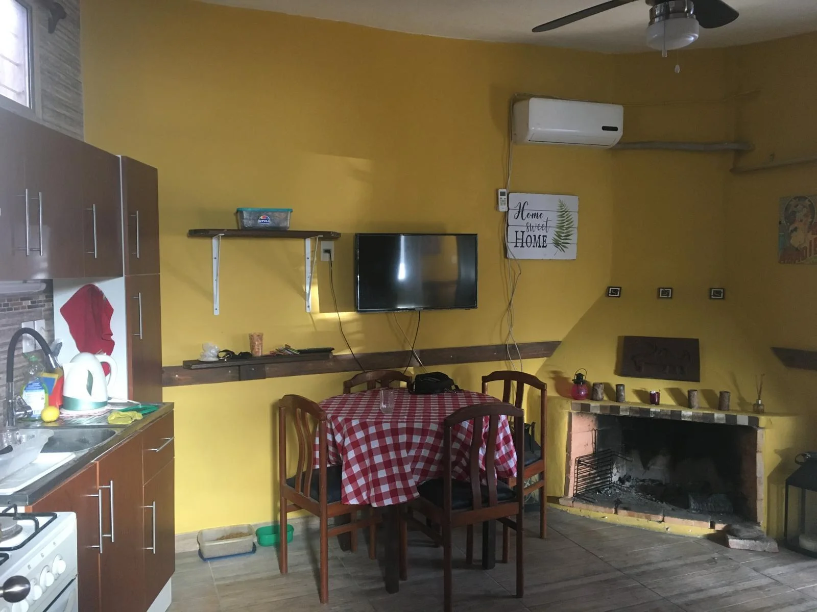 Está muy bien equipada con televisión aire acondicionado, heladera frió seco, microondas, jarra eléctrica etc.