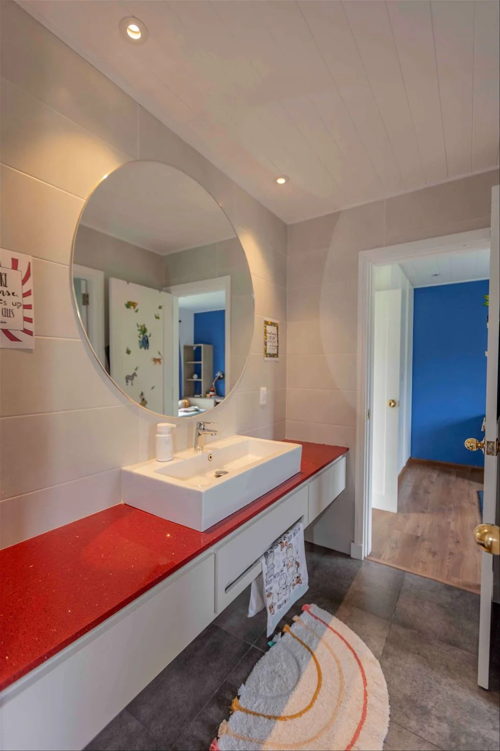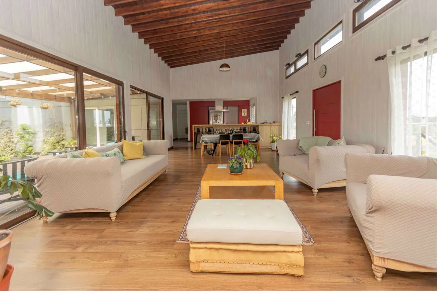 El área social cuenta con living-comedor, cocina integrada, lavadero y dos estar, uno de ellos con escritorio, junto a un toilette de recepción. La zona privada ofrece suite principal con baño integrado y dos dormitorios adicionales que comparten baño, más un dormitorio de huéspedes con baño propio.