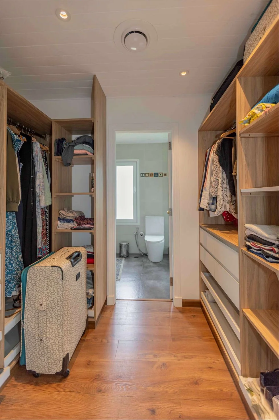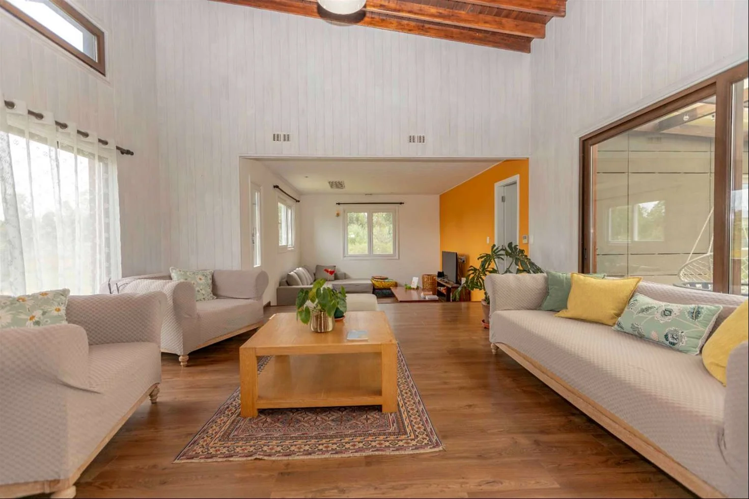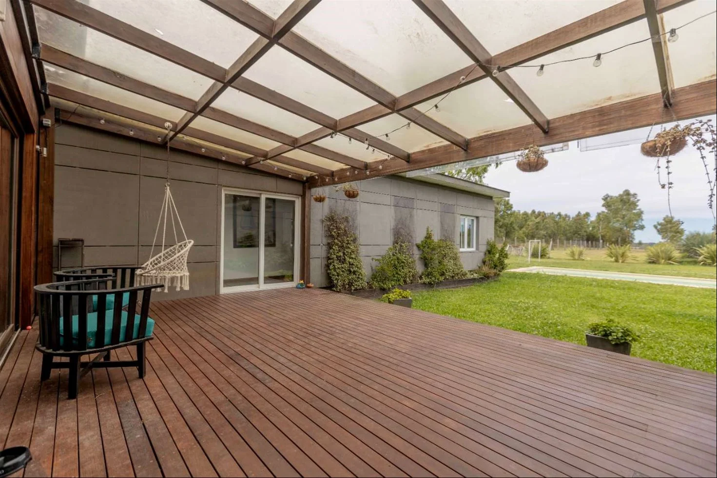 Desarrollada en una planta sobre un terreno de 1.444 m², cuenta con 211 m² edificados. Su fondo con orientación suroeste aprovecha la luz natural y las vistas al verde, aportando calidez a los ambientes.