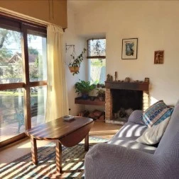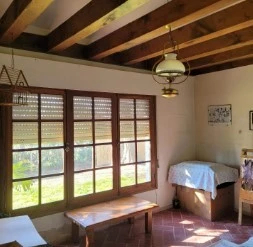 - Casa principal: 3 dormitorios, 1 baño completo, living espacioso