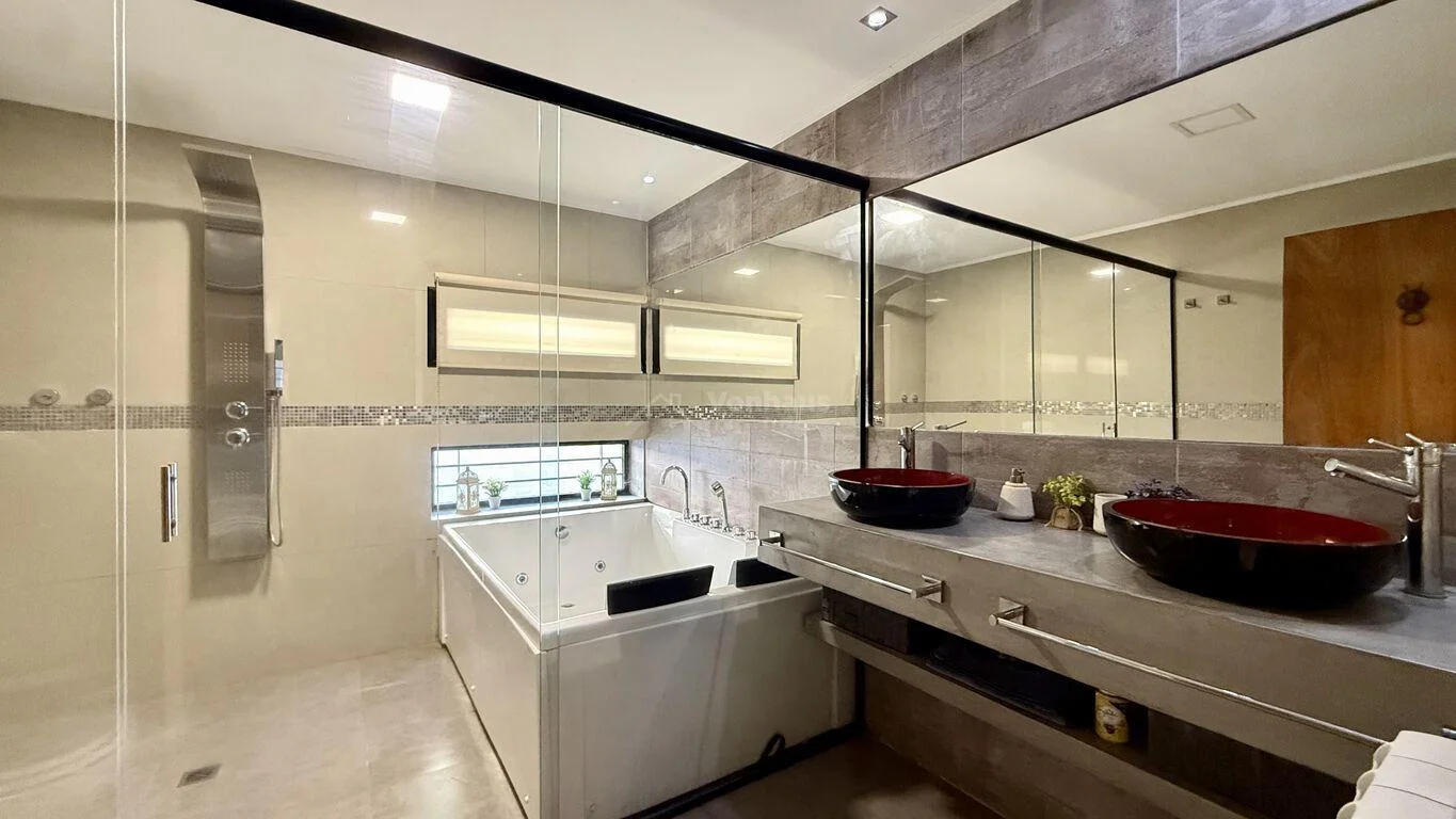 El jardin cuenta con un deck semicubierto de 40 m2 y parrillero, jardin con riego automático con pozo de agua independiente y piscina climatizada con sistema de sal.