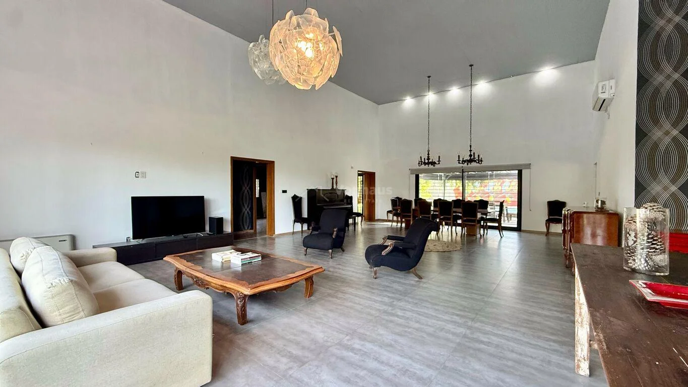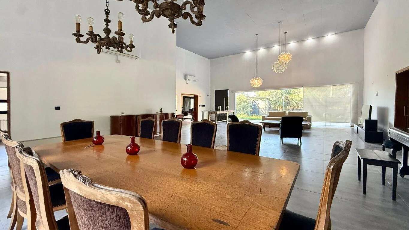 Living-comedor con doble altura, generando gran amplitud y luminosidad, cuenta con ventanales que integran ambos jardines: delantero y trasero.