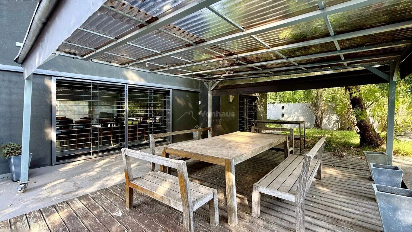 Con 704 m² de terreno, y 255 m² construidos más un deck semicubierto de 40 m², se distribuye de la siguiente manera: