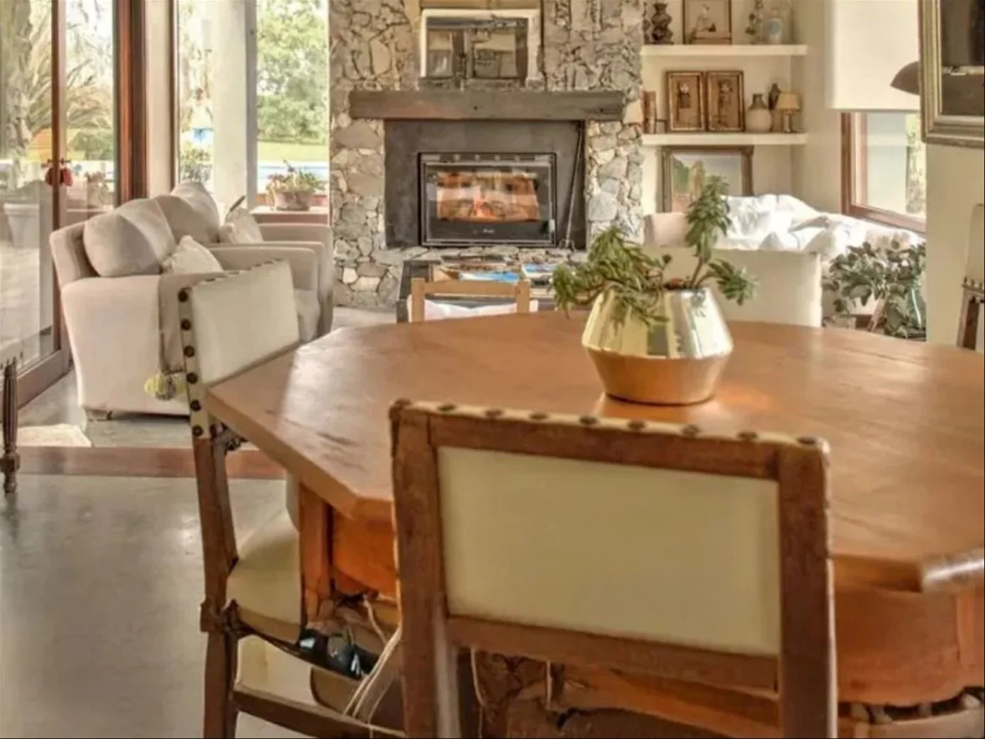 En planta baja: hall de entrada, amplio living comedor con estufa de alto rendimiento, grandes ventanales hacia el jardín y piscina. Toilette, cocina definida con comedor diario y estar con estufa a leña, además de parrillero techado.