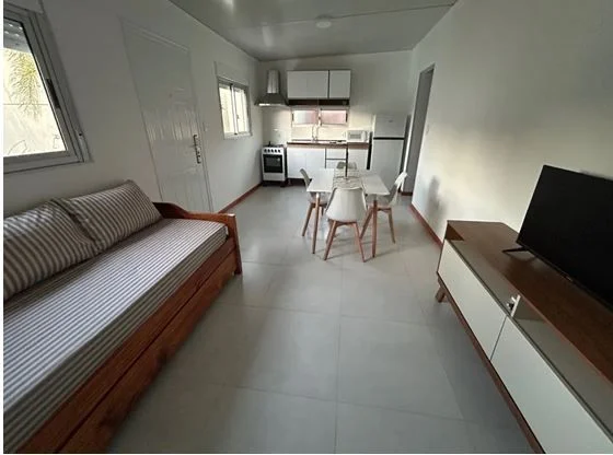 A estrenar 3 hermosas casas muy modernas Gran oportunidad de alquilar temporalmente, 3 casas a estrenar, en el balneario La Floresta, a solo 2 cuadras de la playa y del mini centro comercial, con piscina climatizada. Se trata de un complejo privado y cerrado de 3 casas, independientes y que comparten la piscina climatizada, barbacoa y el parrillero y lugares de descanso. 2 de las casas (Palma y Coral), Ideales para disfrutar, máximo 4 personas, de una estadía cómoda y relajada, con de 40 metros construidos en un jardín de 150 metros, que tiene un dormitorio con cama matrimonial, placar y aire acondicionado, living-comedor-cocina integrado y baño completo. En living-comedor, con aire acondicionado, rack con TV Smart, de 42 pulgadas, Wifi, tiene cama marinera para 2 personas, mesa y 4 sillas. La cocina completa con heladera con frezzer, cocina con horno a gas microondas, pequeños electrodomésticos y vajilla para 4 personas. El baño completo con calefón y lavarropas y tendero móvil. Amplios ventanales y las aberturas son muy seguras. Practicuna disponible, solicitar al realizar la reserva. Incluye ropa de cama y toallas. La otra casa (Perla), con 30 metros construidos, ideal para 2 personas, tiene 1 dormitorio con cama matrimonial, placar y aire acondicionado y TV Smart de 42 pulgadas, Wifi, cocina-comedor, con heladera con frezzer, cocina con horno a gas, microondas, pequeños electrodomésticos y vajilla para 2 personas y baño completo con calefón y lavarropas. Amplios ventanales y las aberturas son muy seguras. Practicuna disponible, solicitar al realizar la reserva. Incluye ropa de cama y toallas. Zona tranquila, rodeada de naturaleza y con acceso rápido a la playa, solo 2 cuadras, y a su vez cuenta con una gran piscina climatizada. Ubicación privilegiada, con todos los servicios a poca distancia, supermercado, pizzería y parada de bus interdepartamentales a una cuadra. A menos de 1 km del centro, donde se encuentran todos los comercios, farmacia, panadería, heladería, fábrica de pastas, restaurantes, 2 supermercados, quioscos, Abitab y Red pagos. Disponibles para alquilar por quincena enero y febrero, y para el resto del año consultar precios por estadías más cortas. El precio publicado es por quincena en temporada alta e incluye todos los consumos de luz, agua y gas. Lo que se ofrece en la zona de uso común: Piscina climatizada, Parrillero techado, Espacios verdes, Deck con sillones NO SE ACEPTAN MASCOTAS NO SE PUEDE FUMAR DENTRO DE LAS CASAS Casa 1 Palma (4personas): disponible a partir del 1o enero en adelante. Casa 2 Coral (4 personas): disponible a partir del 11 de enero en adelante. Casa 3 Perla (2 personas): disponible a partir del 17 de enero en adelante. Precio casas 1 y 2: 2.000 dólares por quincena incluyen todos los consumos. Precio casa 3: 1.600 dolores por quincena e incluye todos los consumos. Se cobra, adicionalmente solamente, 50 dólares para la limpieza. A estos precios se le debe agregar un 10% de comisión inmobiliaria. XINTEL (IGR-IGR-1072)