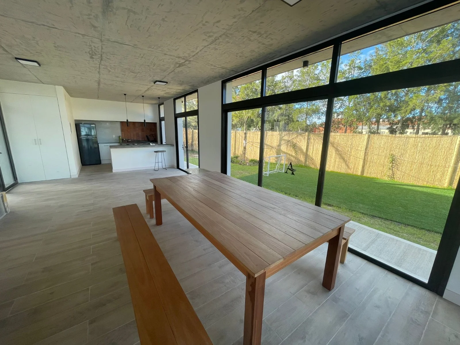 MACARI ALQUILA CASA DE 3 DORMITORIOS PARQUE MIRAMAR A ESTRENAR Casa a estrenar de dos plantas en barrio privado Almadía a orillas de un hermoso Lago. La unidad cuenta con cocina integrada al living comedor, placares a medida, mesada funcional ideal para comer a diario, baño social, estufa de alto rendimiento, patio de uso exclusivo con parrillero. 3 dormitorios en planta alta con placares, baño completo, muy iluminado, dormitorio principal con vestidor. Todas las aberturas con doble vidrio, horno eléctrico, campana, aires acondicionados. Dos cocheras. Servicios: guardia presencial la 24 horas, monitoreo perimetral con respuesta, Cowork con vista a espacio verdes y Lago, juegos infantiles al aire libre, actividades náuticas, Barbacoa con parrillero, huerta orgánica, piscina, fogón, estacionamiento para vehículos eléctricos. Predio cerrado que se compone de 31 casas rodeadas de naturaleza. Superficie: 97 metros cuadrados. Admite mascotas. Cortinas de enrollar en dormitorio tipo monoblock, color Bronce oscuro. Precio: U$S 1500 mensuales. Gastos comunes: $16.000 pesos mensuales Garantía: seguros. “Lo toca Macari lo alquila”, sumáte confíanos tu propiedad