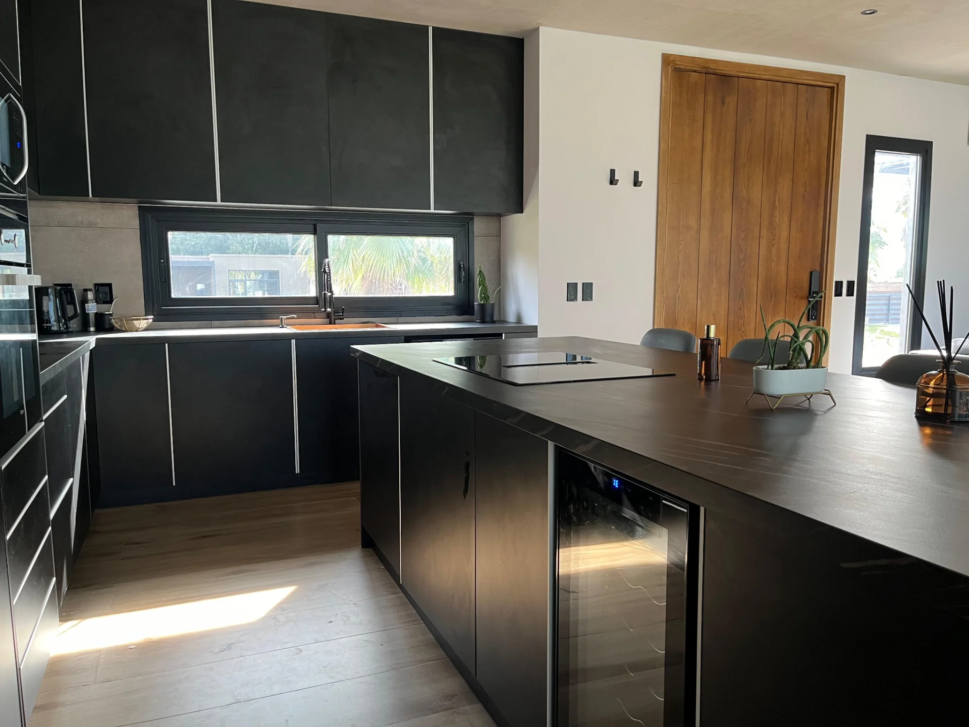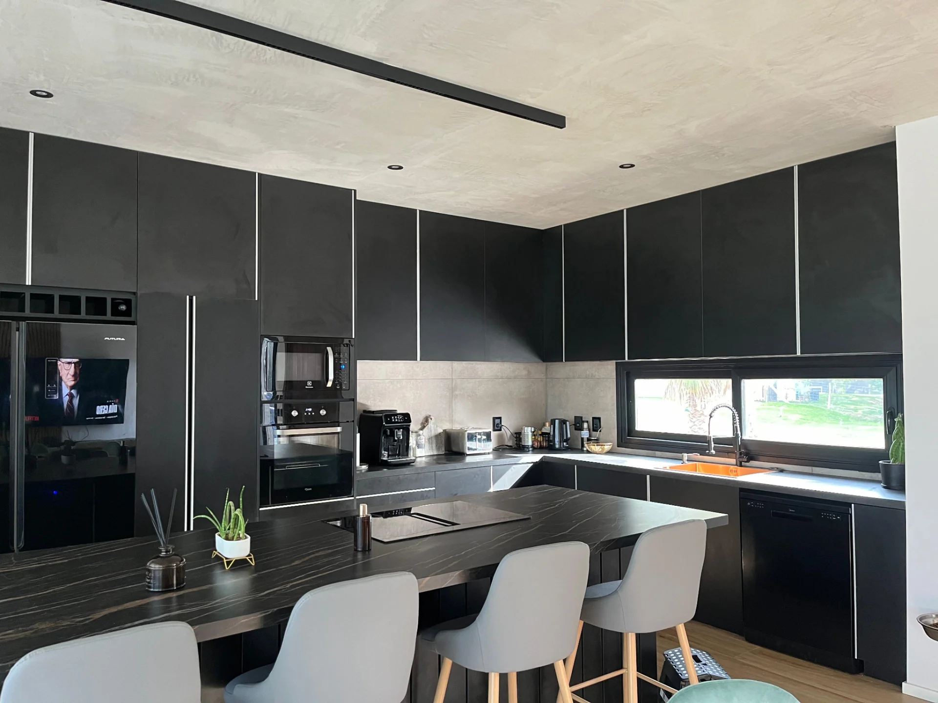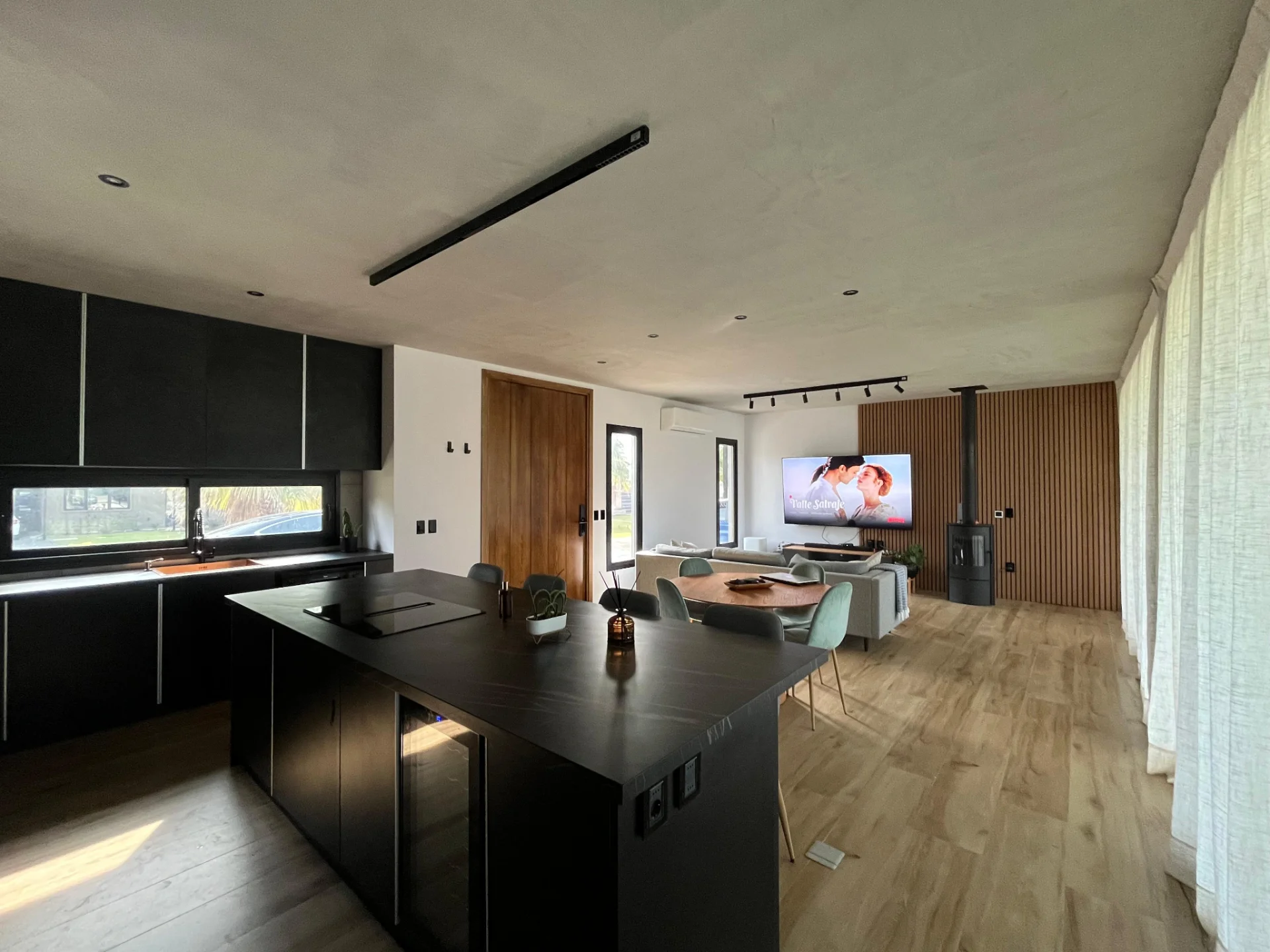 -Cocina: Anafe por inducción Bosch, Isla de Porcelanato, heladera dobe, cava, Microondas y horno empotrados y lavavajillas.