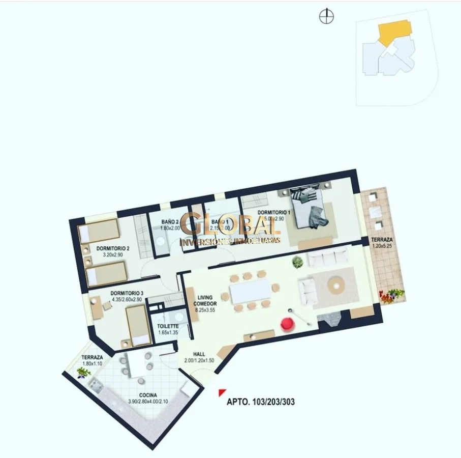 Construido en 2014, con 133 m² totales (106 m² edificados), este apartamento combina ubicación, calidad constructiva y valor de reventa.