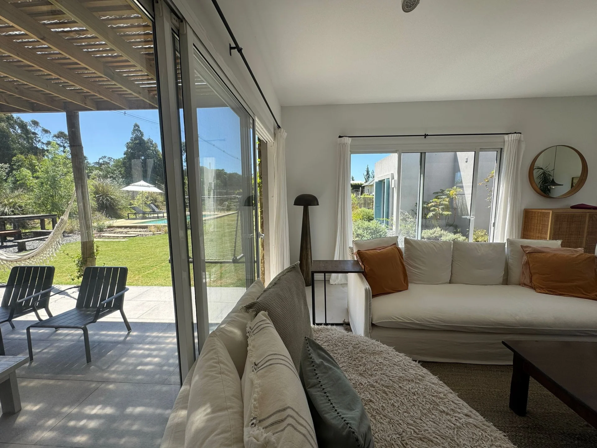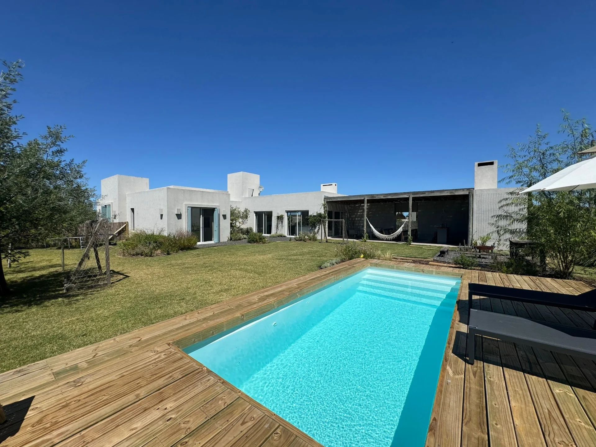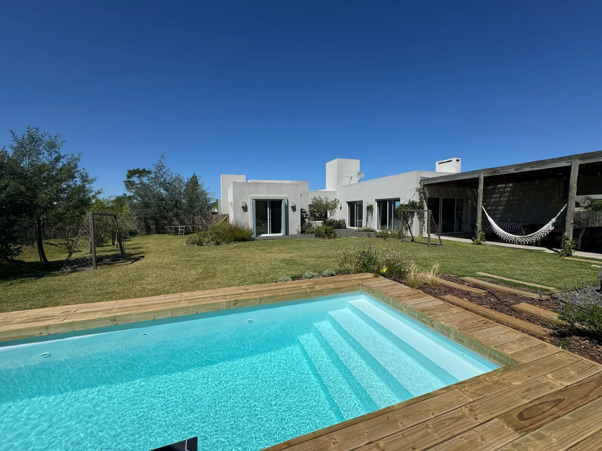 Moderna casa de estilo mediterráneo en venta en Mirador de la Tahona, ubicada en un terreno esquinero de 1.061 m² con fondo orientado al noroeste, ideal para disfrutar del sol durante la tarde. Con solo 4 años de construcción, combina diseño, confort y excelente calidad constructiva. Desarrollada en una planta, cuenta con amplio living comedor con estufa a leña y salida directa al jardín, generando una conexión fluida entre interior y exterior. Cocina definida equipada con horno y anafe, lavadero independiente con lavarropas y secarropas, y acceso de servicio. Dispone de 4 dormitorios. El principal en suite, con vestidor, baño con ducha y salida al jardín. Dos dormitorios dobles comparten un baño completo con bañadera. El cuarto dormitorio, actualmente utilizado como playroom o escritorio, cuenta con baño completo con ducha y acceso independiente, ideal para huéspedes. Construída de excelente calidad en steel frame. Losa radiante por bomba de calor de alta eficiencia y aire acondicionado en todos los ambientes, garantizando confort durante todo el año. En el exterior se destaca un gran parrillero techado, jardín amplio con piscina de 7 x 3 metros y solárium con deck de madera. Estacionamiento para 2 vehículos. El perímetro se encuentra cercado y cuenta con portera hacia una rotonda en calle sin salida, entorno muy tranquilo y seguro para la circulación de niños. Una propiedad funcional, luminosa y lista para disfrutar. CONSULTE! Mercedes Arocena Bienes Raices
