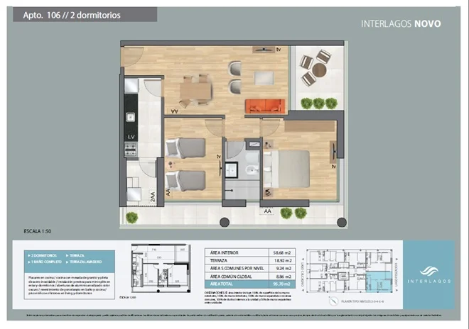 Es el nuevo edificio de Interlagos, actualmente en construcción, y el que completa el concepto. Novo significará un upgrade en calidad de materiales y construcción, manteniendo lo mejor del proyecto: vistas inimaginables, confort y calidad de vida en los lagos de Carrasco. Su entrega está prevista para noviembre 2026.
