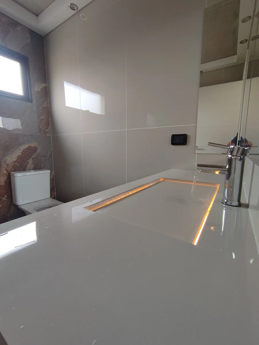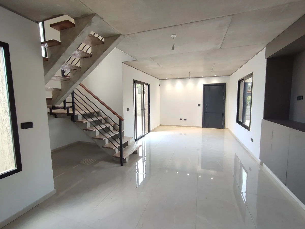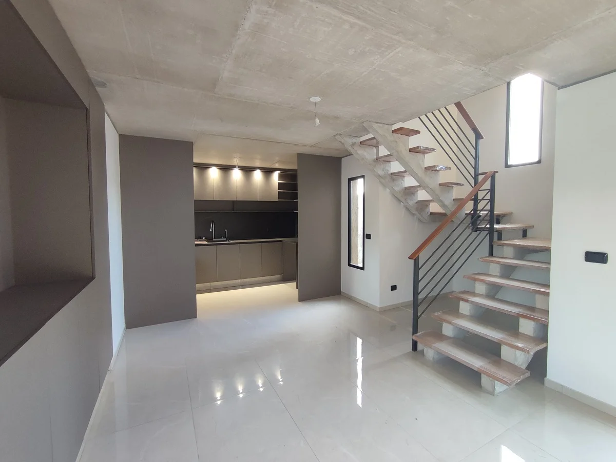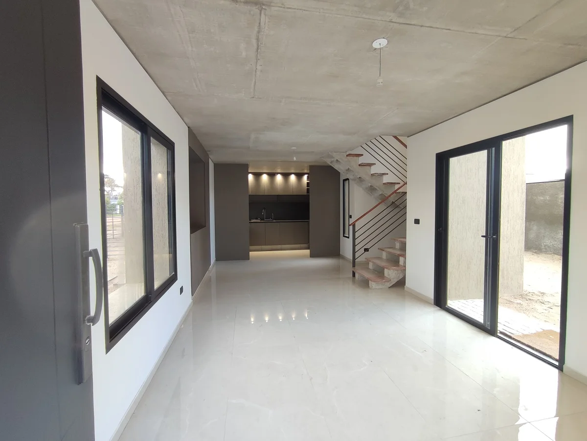 En planta baja living comedor de buen tamaño, con iluminación ya colocada en cenefas. Cocina definida pero abierta con barra divisoria hacia el área social. Puerta de entrada blindada y acceso directo al fondo desde este sector por puerta ventana. Grandes ventanales y muy buena luz en todos los ambientes.