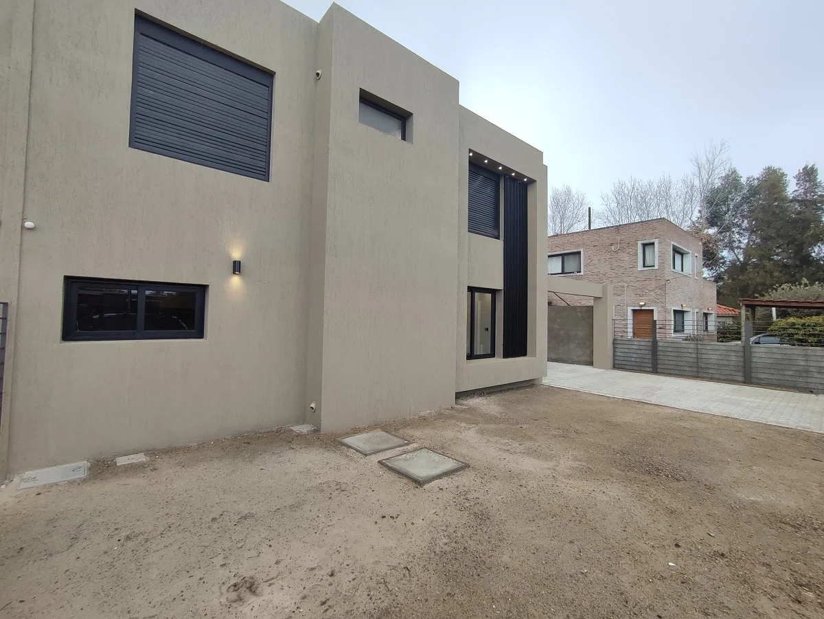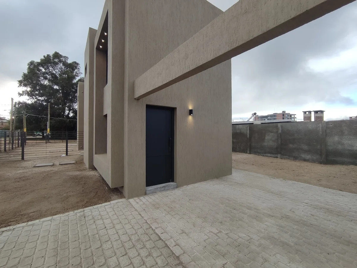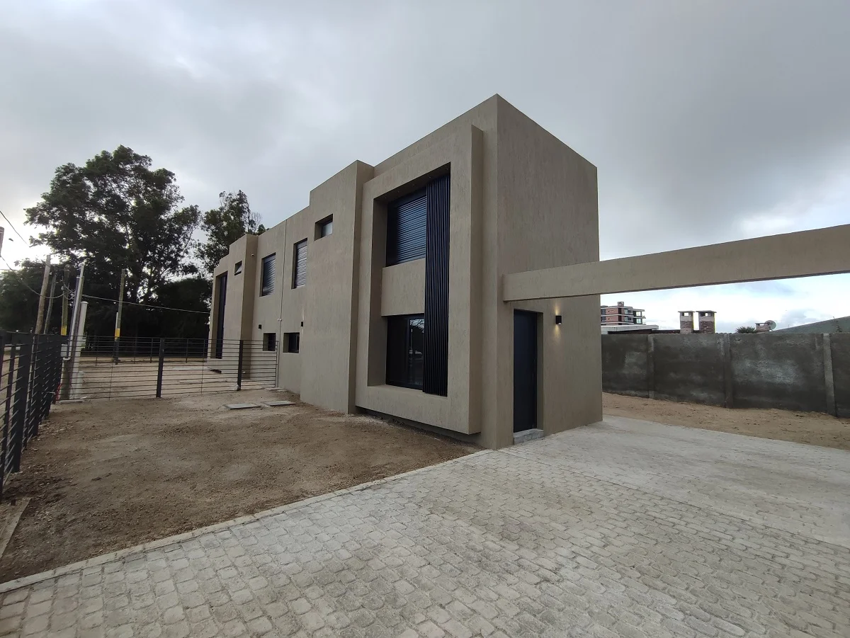 Construcción clásica con paredes de ticholo ladrillo o similar, pisos internos en porcelanatos, los cuales también cubren las paredes de cocina generando integración en las terminaciones de este sector. Baño revestidos con cerámicas de primera calidad. Dicroicas en los tránsitos de espacios sociales y sobre barra de cocina. Los muebles de cocina son de primer nivel, mesada de porcelanítico con acabados de paredes de la mismas terminaciones, todos los cerramientos de aluminio anodizado y reja perimetral frontal con portón automatizado y veredas transitables en todo el perímetro de la casa como el espacio vehicular (dentro del cual caben dos vehículos sin problemas).