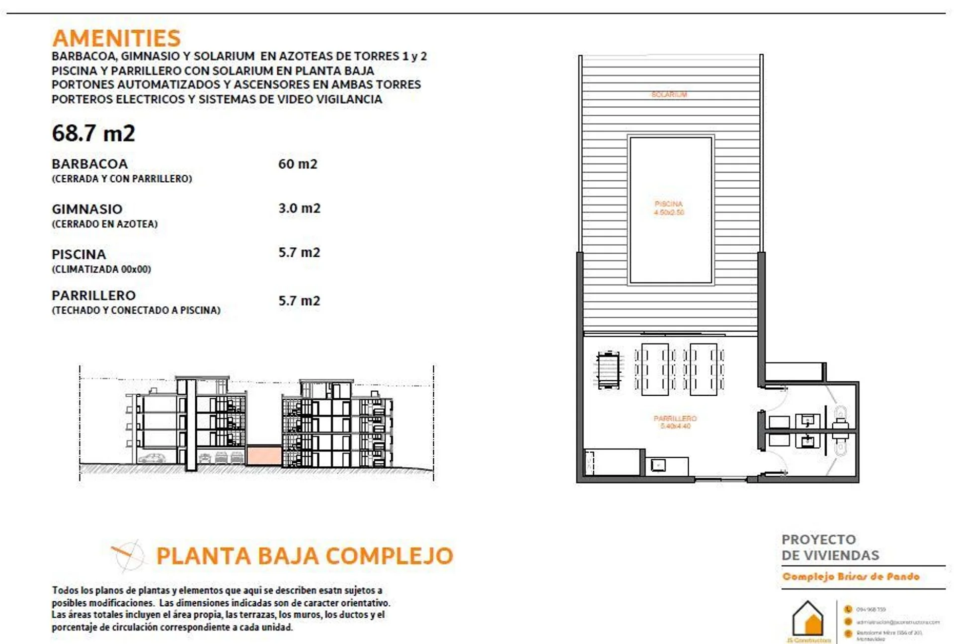 Corredor Responsable: - Contacto: Cecilia Mederos Se vende en exclusividad, apartamento en pozo, complejo Brisas de Pando. Ubicado en un punto estratégico de la ciudad con fácil acceso y egreso tanto hacía Montevideo, como hacía el este. El complejo Brisas de Pando comienza sus obras el próximo año 2026, tiene fecha prevista de entrega a fines del año 2027, son dos torres de edificios, en total 28 apartamentos de uno y dos dormitorios, ascensor en cada torre, cocheras, piscina, parrillero en planta baja, gimnasio y barbacoas con solarium en azoteas.Predio cerrado con circuito de video vigilancia. Finas terminaciones, construcción tradicional, ley de vivienda promovida que exonera del ITP en la compra, IVA y Patrimonio de corresponder y también exonera al inversor de pagar IRPF sobre el alquiler durante 10 años, todo esto lo hace un producto muy atractivo para invertir en pozo y adquirir estas unidades a un precio super promocional, gran rentabilidad sobre la inversión, es un producto único. La unidad A204 se ubica en la torre A, sus vistas permitirán disfrutar de hermosos atardeceres con una gran vista despejada, cuenta con 60m² propios de apartamento (living, cocina comedor, lavadero, baño y dos dormitorios) y balcón de 5m². Será un complejo con los mejores amenities de la zona. Precio promocional contado U$S 105.900.- Precio promocional entregando el 20% y luego por avance de obra durante el año y medio de la misma U$S 116.000.- Cocheras U$S 3.000.- Gastos de ocupación 3%, gastos comunes calculados en aproximadamente $ 4.500.- por mes. Consulte por otras unidades. Compartimos con todos los colegas Comisión inmobiliaria 3% más IVA Cada Oficina es de propiedad, gestión y desarrollo independiente La presente publicación describe las características esenciales del inmueble, debiéndose consultar al responsable de la operación por la eventual actualización de las medidas, descripciones arquitectónicas y funcionales, servicios, impuestos, precios y demás información, cuyos valores son aproximados.