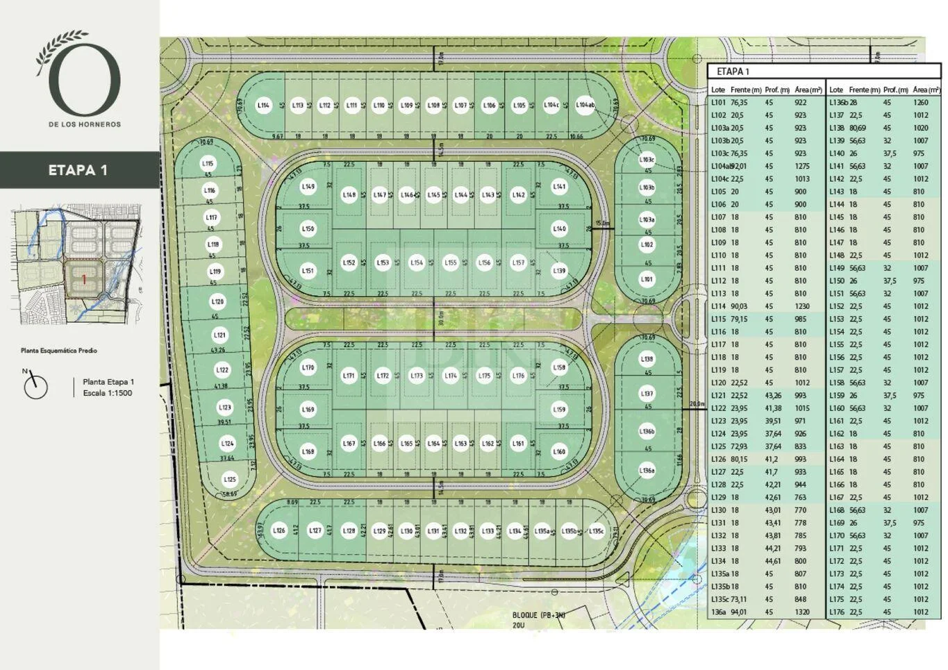Reventa de Lote en Los Olivos de los Horneros, Etapa 1 Lote 159 Superficie: 1.012 m2 Frente: 22.5 m Orientación: Fondo Suroeste 7 Barrios Privados | 480 Lotes | 72 hás de Parque Club House | Piscina | Cancha de Tennis y Paddle | Locales Comerciales | Oficinas Arquitectura y Urbanismo: Gómez Platero Desarrollo y Administración: Estudio Luis E Lecueder Contáctanos para conocer más.