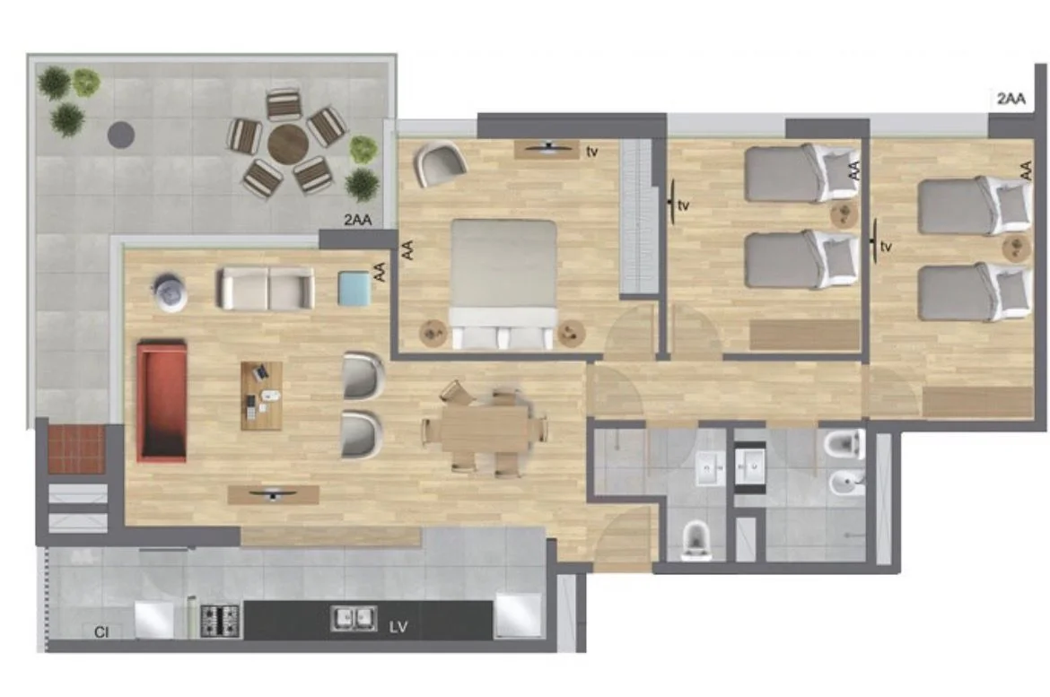 TreeHouse Bienes Raíces presenta este espectacular apartamento de 3 dormitorios con vista en un pasaje natural entre los dos lagos de Carrasco, en Ciudad de la Costa, Canelones. Edificio de Interlagos NOVO (edificio 5), actualmente en construcción y entrega prevista para noviembre 2026, esta ubicado en Tulipan, esquina Glicina y Venusa, a pasos de Av. Giannattasio. Interlagos se construye bajo la ley de Vivienda Promovida. La unidad se encuentra en el primer piso, al contrafrente con orientación Norte, y cuenta con 66,60m² interior + 14,40 m2 de terraza. Contamos con otras opciones, desde 265.000 hasta 290.000 USD. Todas las unidades de tipología de 3 dormitorios tienen orientación Norte-Noroeste. Características del apartamento: -3 dormitorios incluso el principal con acceso directo a la terraza -2 baños completos, equipados con mueble y espejo -Cocina totalmente equipada -Living comedor con salida a la terraza -Cochera disponible (no techada a 19.500 USD - techada desde 22.000 USD hasta 28.000 USD) El edificio ofrece area común: Muelle Privado, SUM Panorámico, Parrillero, Solarium, Juegos Infantiles, Jardín, Gimnasio, Cocheras, Video Portero 24 hrs, Predio Cerrado / CCTV, Video Vigilancia 24 Hrs. Acceso Remoto Comercializa Marion Muñoz - TreeHouse Bienes Raíces XINTEL (TBR-TBR-5448)