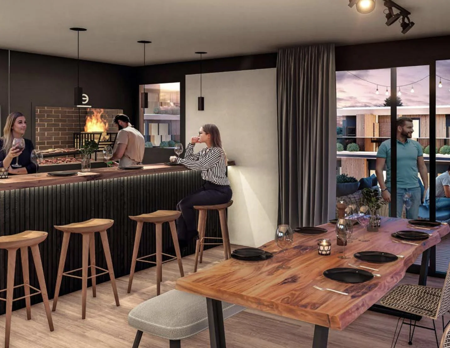 Barbacoa exterior con Parrillero, Piscina exterior y Solarium. Gimnasio con equipos y espacio para actividades deportivas. Sauna. S.U.M 2 salones (Rooftop) con Terrazas.