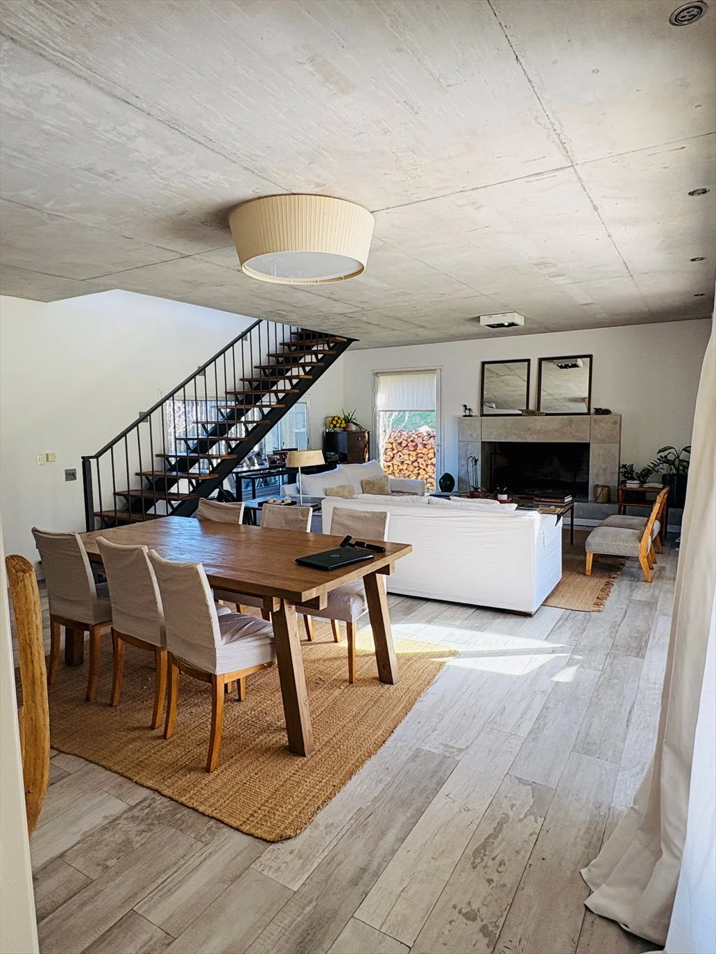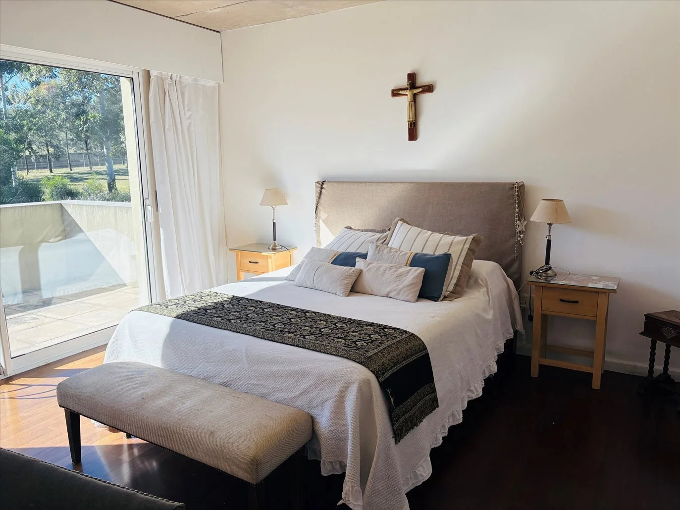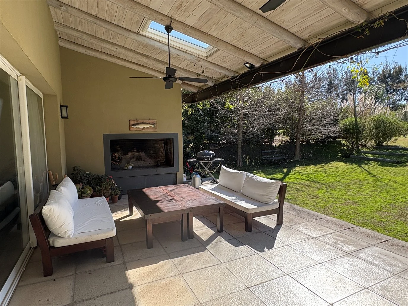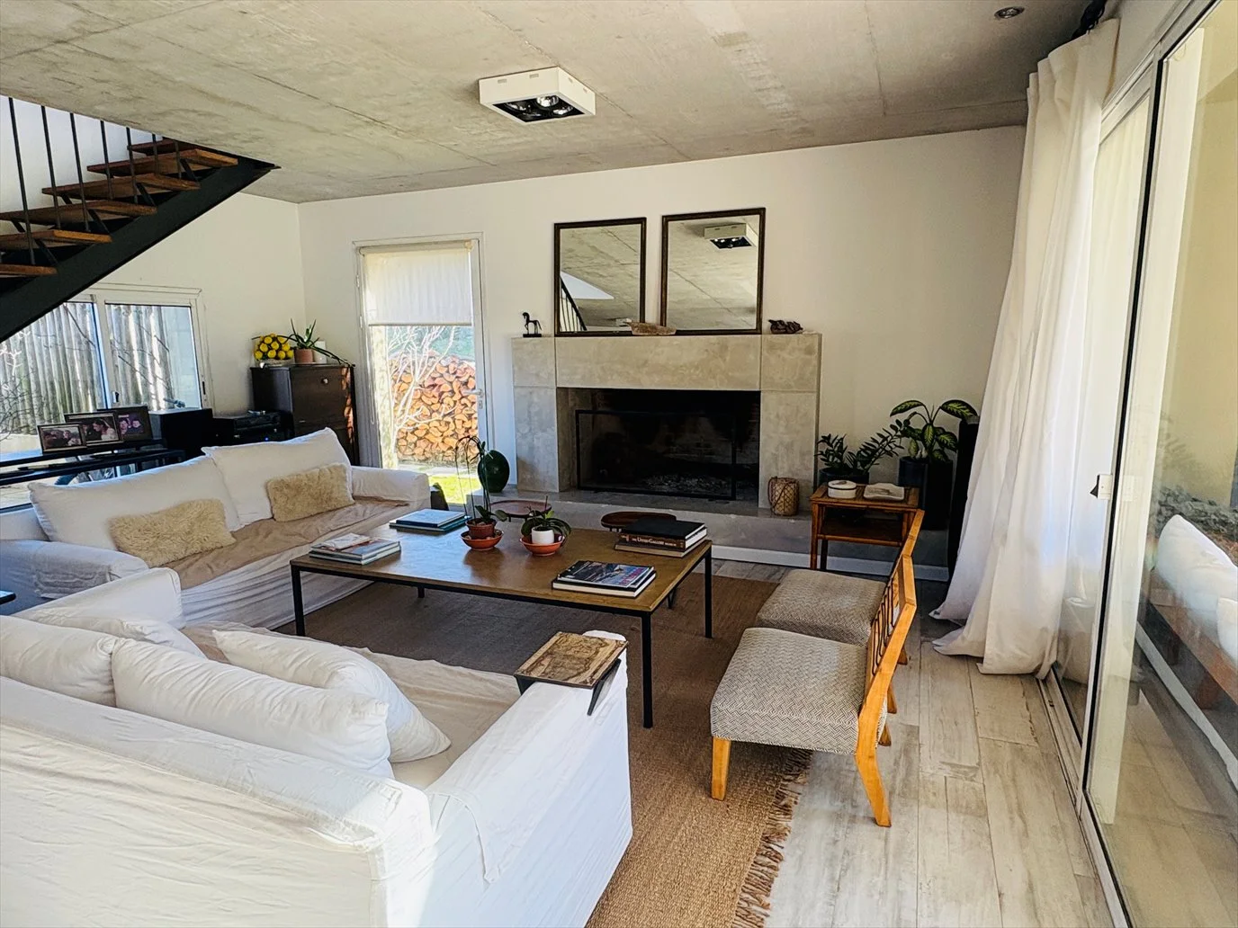 Jardin privado al frente, hall de entrada, living comedor con estufa a leña y salida a divina galeria con parrillero techado.