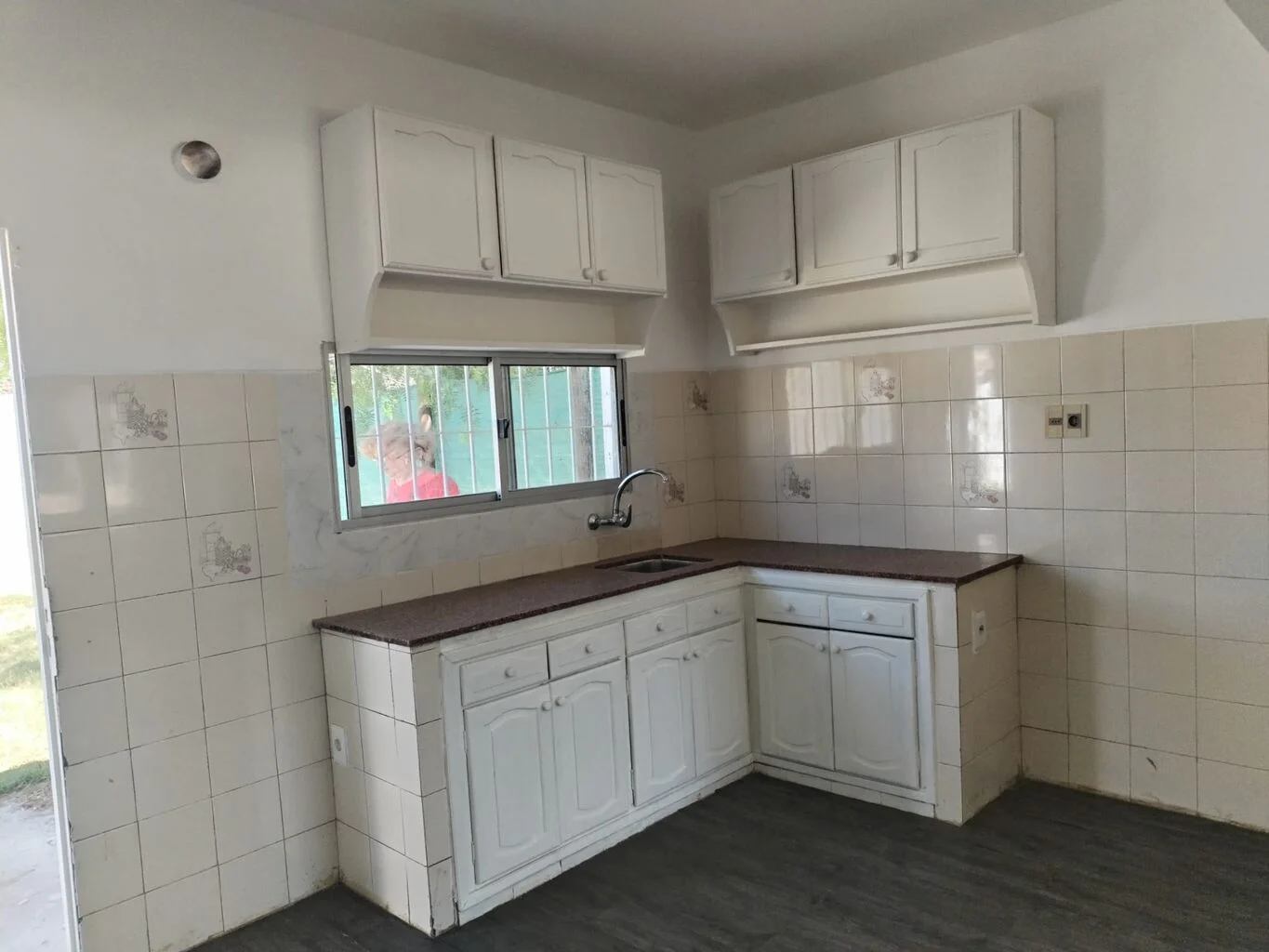 Es una casa muy luminosa, tiene 2 dormitorios, 1 baño completo, cocina integrada con linving comedor con estufa a leña, pisos de madera en las habitaciones y piso cerámica símil madera en cocina y living comedor.