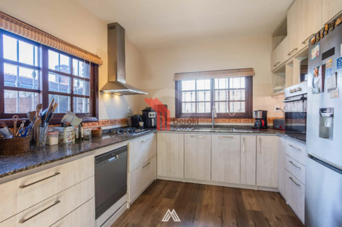 En la planta alta se encuentran los 3 dormitorios, todos con roperos empotrados y climatización mediante unidades de aire acondicionado. Uno de los dormitorios dispone de baño en suite, mientras que hay otro baño completo y un espacio abierto que puede ser utilizado como office. La construcción tradicional de paredes dobles de ladrillos garantiza un excelente aislamiento, y los pisos de madera aportan calidez al hogar. Complementando la oferta, la propiedad incluye un portón eléctrico con espacio para 4 vehículos, piscina climatizada con bomba de calor nueva, y una amplia barbacoa/parrillero cerrada. El porche al frente es perfecto para disfrutar de momentos en familia o con amigos.