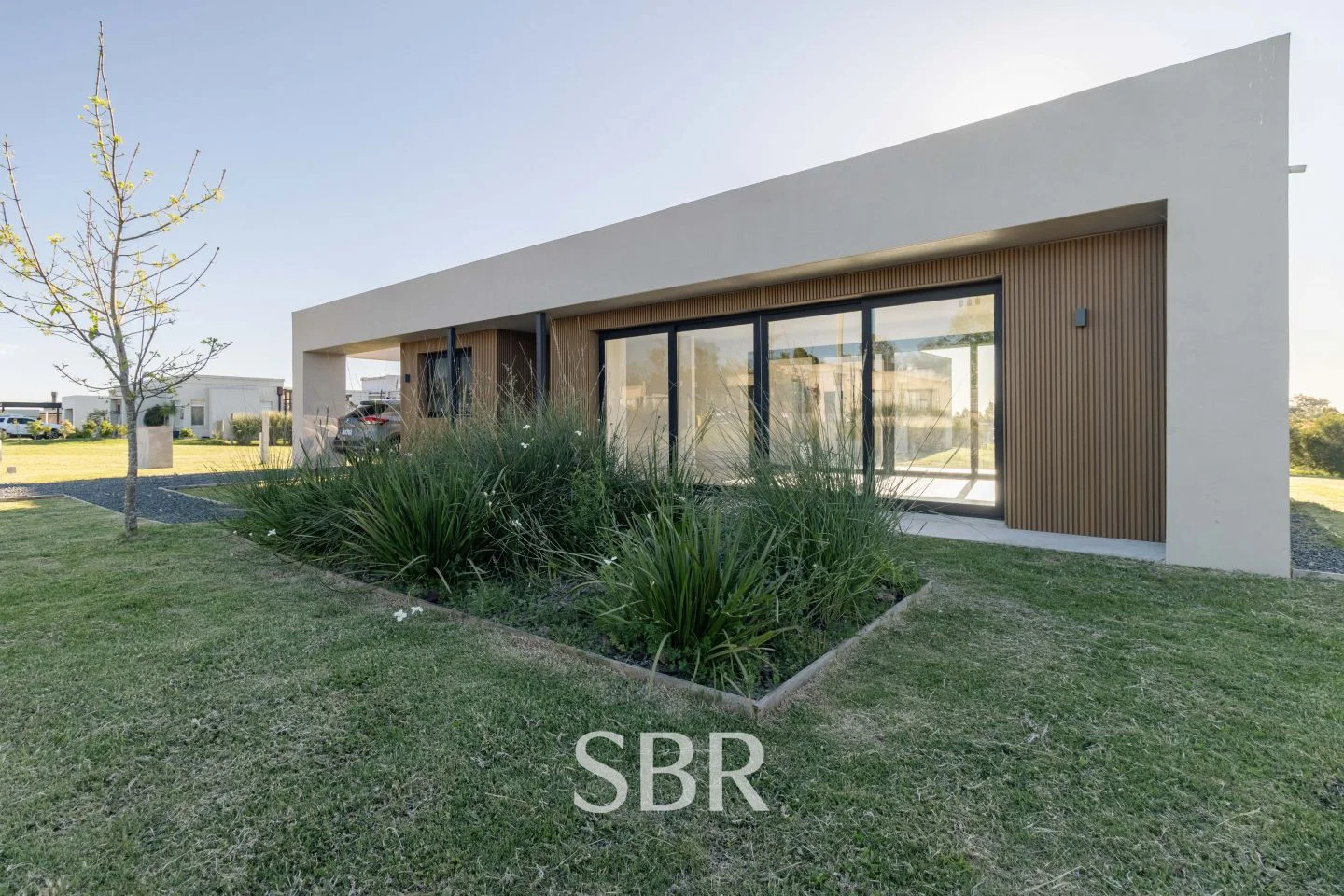 La vivienda cuenta con cochera para un vehículo y sistema de calefacción por losa radiante con bomba de calor, que asegura confort térmico y eficiencia energética.