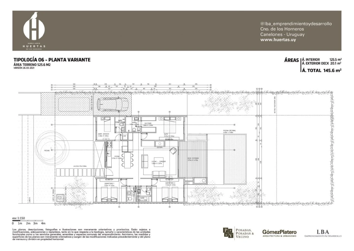 La casa se desarrolla en una sola planta, con un hermoso jardín y una piscina privada orientada al norte.