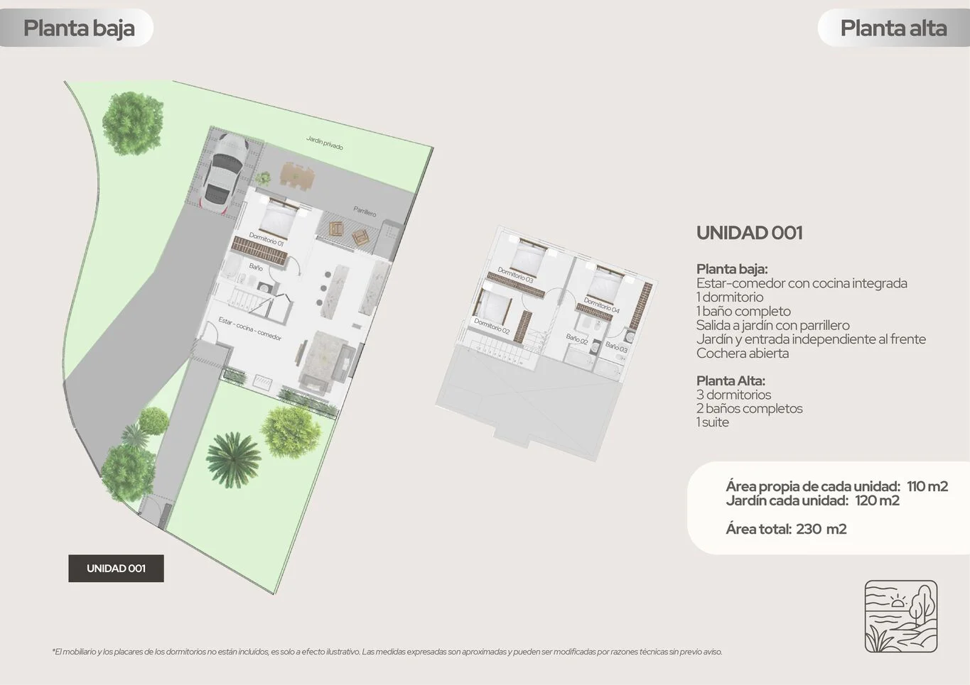 Jardín al frente, ingreso vehicular, cochera, gran fondo con parrillero. Cerramiento perimetral