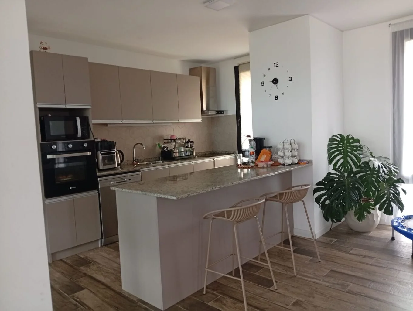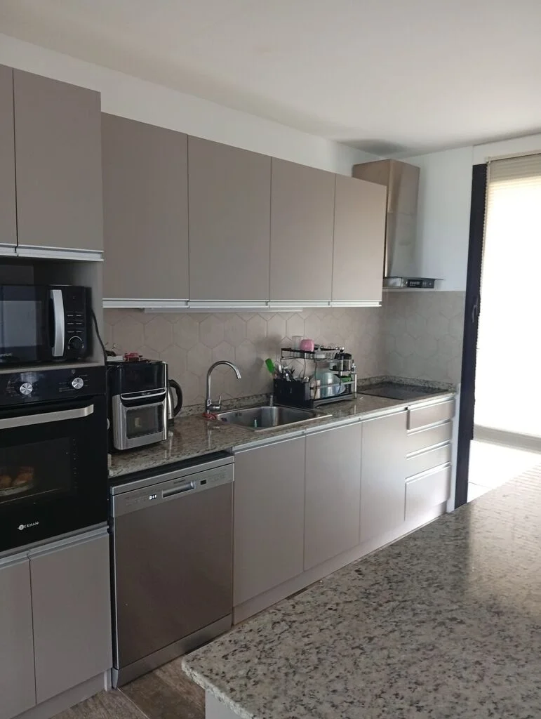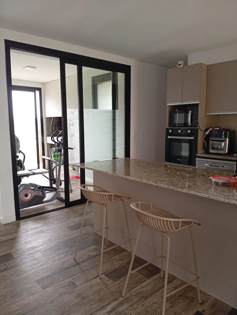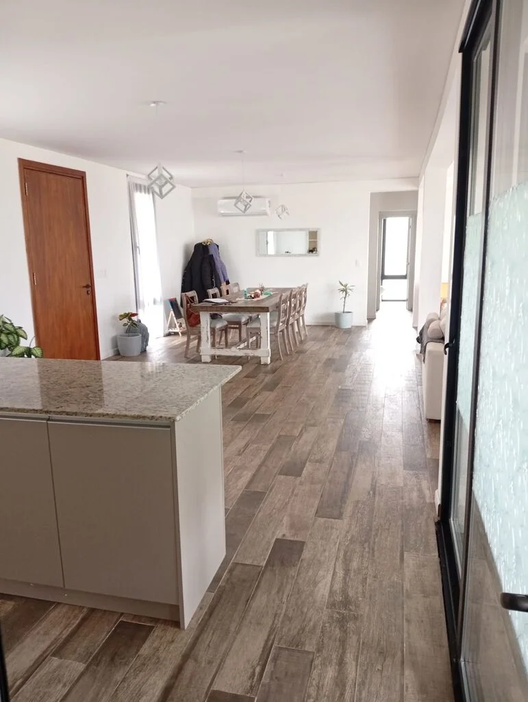 Cocina integrada hacia comedor y living , con isla desayunador, ideal para comidas con familia y amigos. Muebles alacena y bajo mesada. Mesada de granito , grifería de primera calidad monocomando con bacha de acero inoxidable , horno empotrado y conexión para lavavajilla.