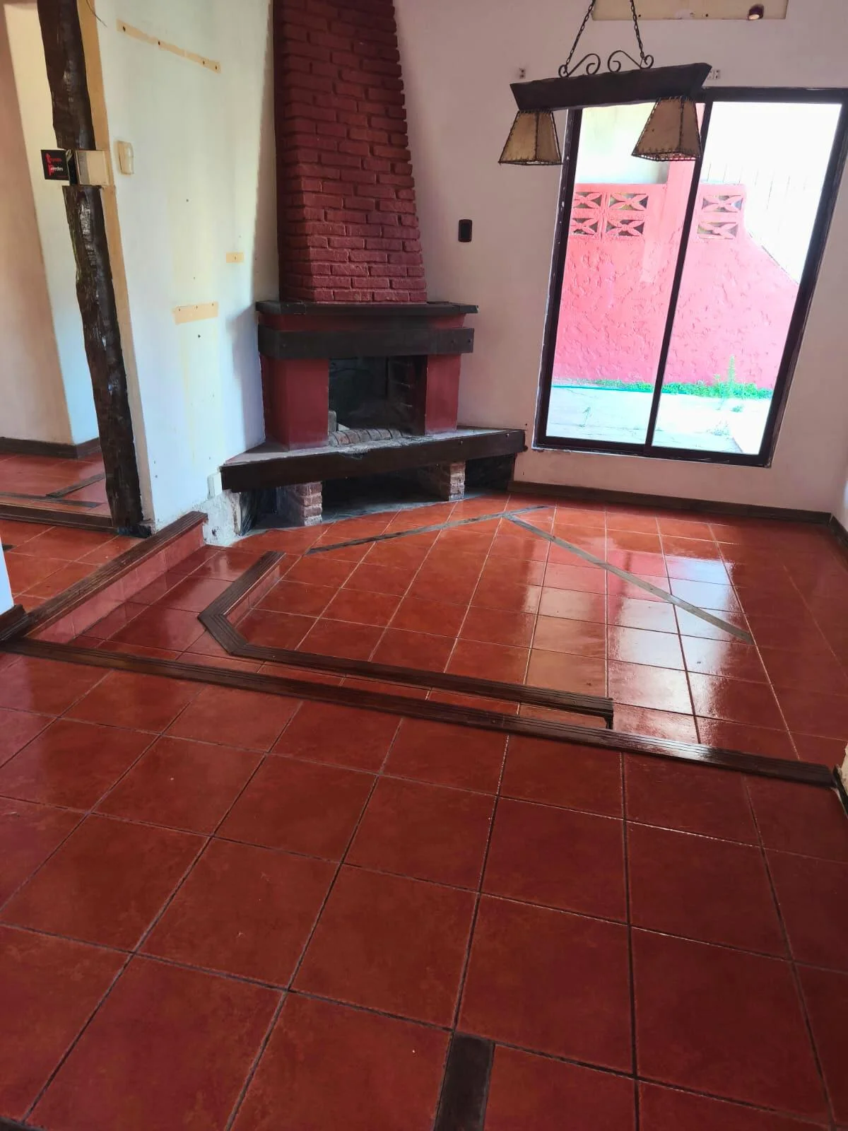 Amplio garaje y pieza con estufa a leña tipo monoambiente.