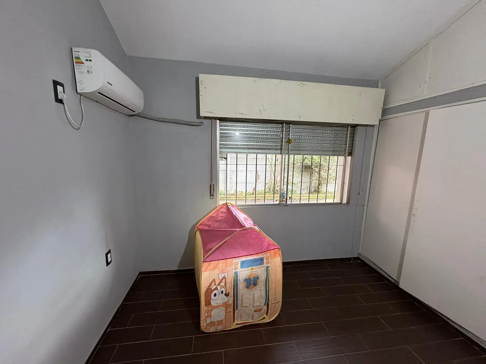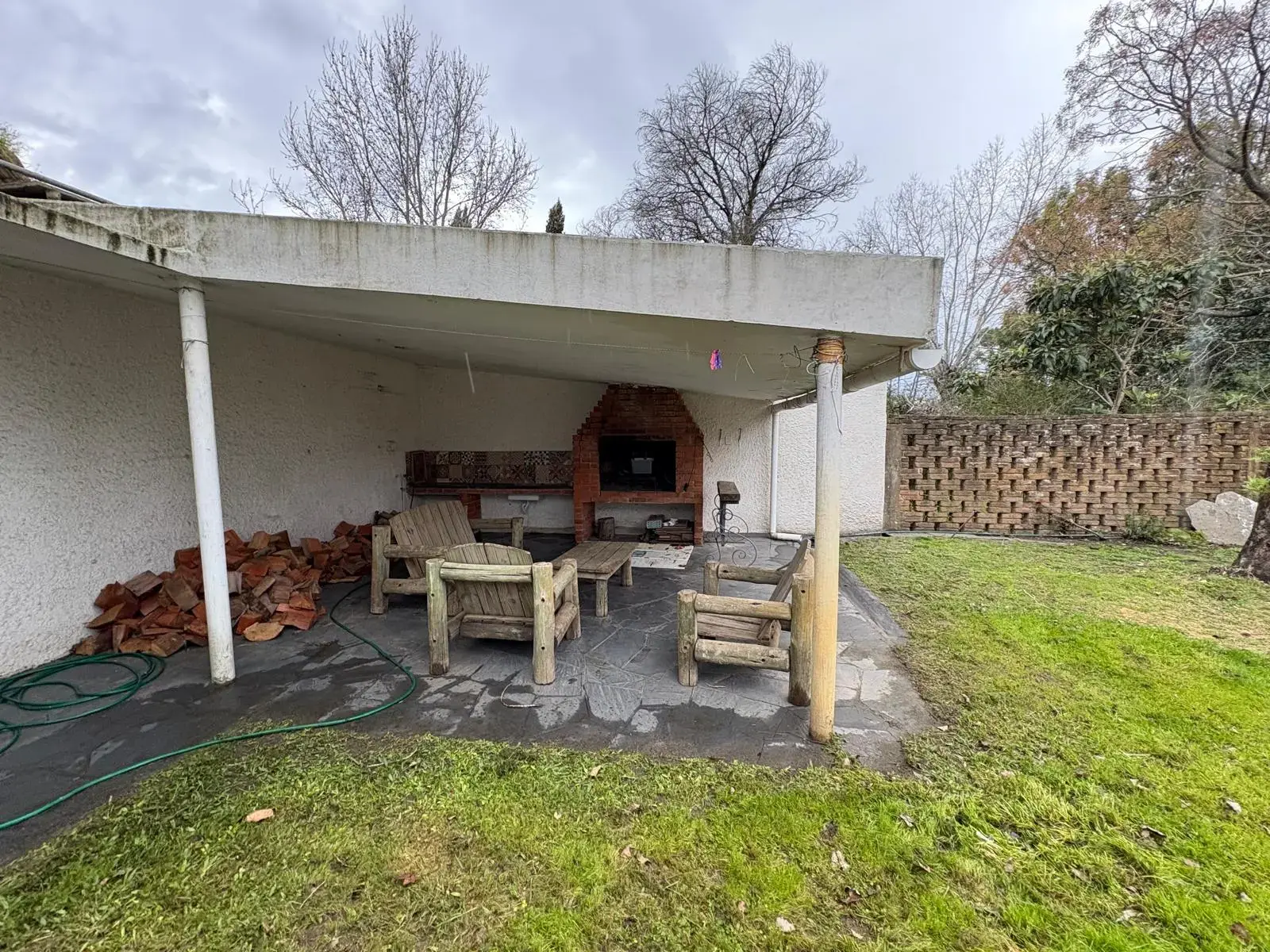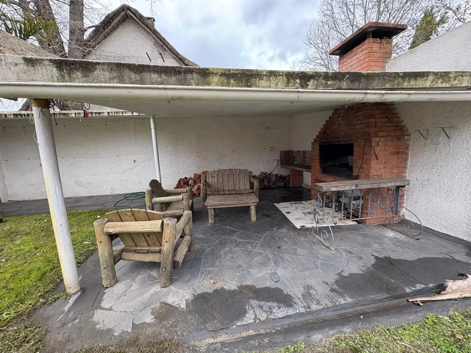 Gran Chalet con techo con tejas de 4 dormitorios, 3 baños, al fondo apto con baño y depósito. Cercada con rejas, amplia cochera.Lindo fondo. Churrasquera con amplio techo, todo el predio cerrado. En excelente estado general. Moderna reciclada.