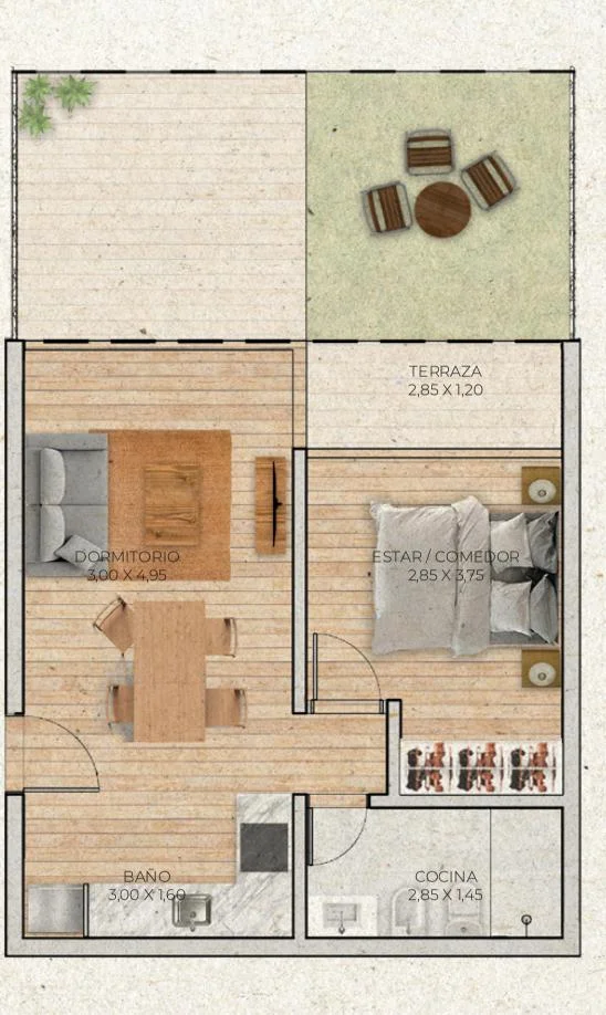 El proyecto se desarrolla en un edificio de 5 niveles, concebido para integrarse con la calma y el encanto característico de la ciudad. Su diseño contemporáneo combina estética, funcionalidad y una sólida estructura de hormigón armado que asegura durabilidad y calidad constructiva.