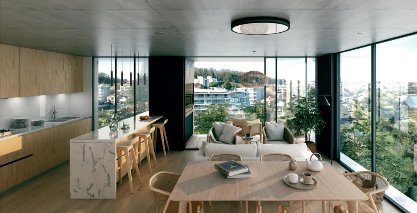 El edificio ofrece apartamentos de 1, 2 y 3 dormitorios, además de 20 cocheras exclusivas, proponiendo un nuevo estándar de confort y serenidad en una de las localidades más emblemáticas del país. Sus fachadas presentan un diseño actual con terminaciones de calidad, pensadas para mantener una estética moderna y atemporal.