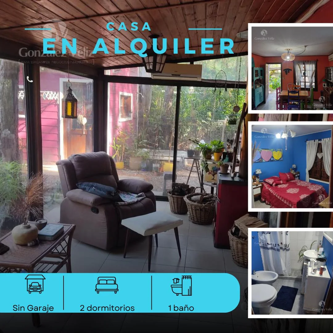 En alquiler linda casa totalmente amoblada ubicada en Balneario Zagarzazu a sólo dos cuadras de la playa, La misma se compone de cocina-comedor, jardín de invierno con estufa de alto rendimiento, dos dormitorios y baño. Tiene instalado dos aires acondicionados. La propiedad cuenta con un galpón-lavadero con lavarropas y secarropas.