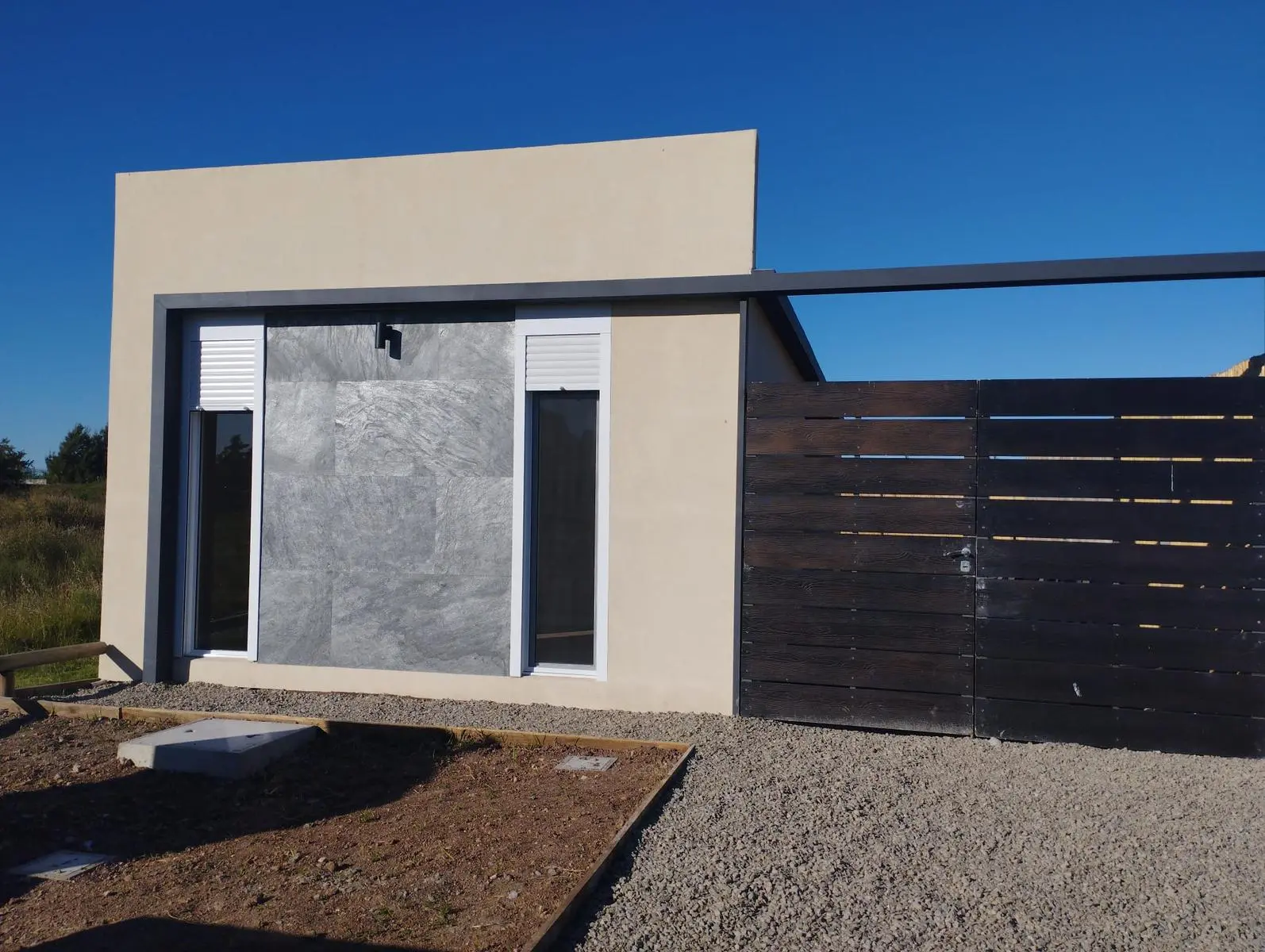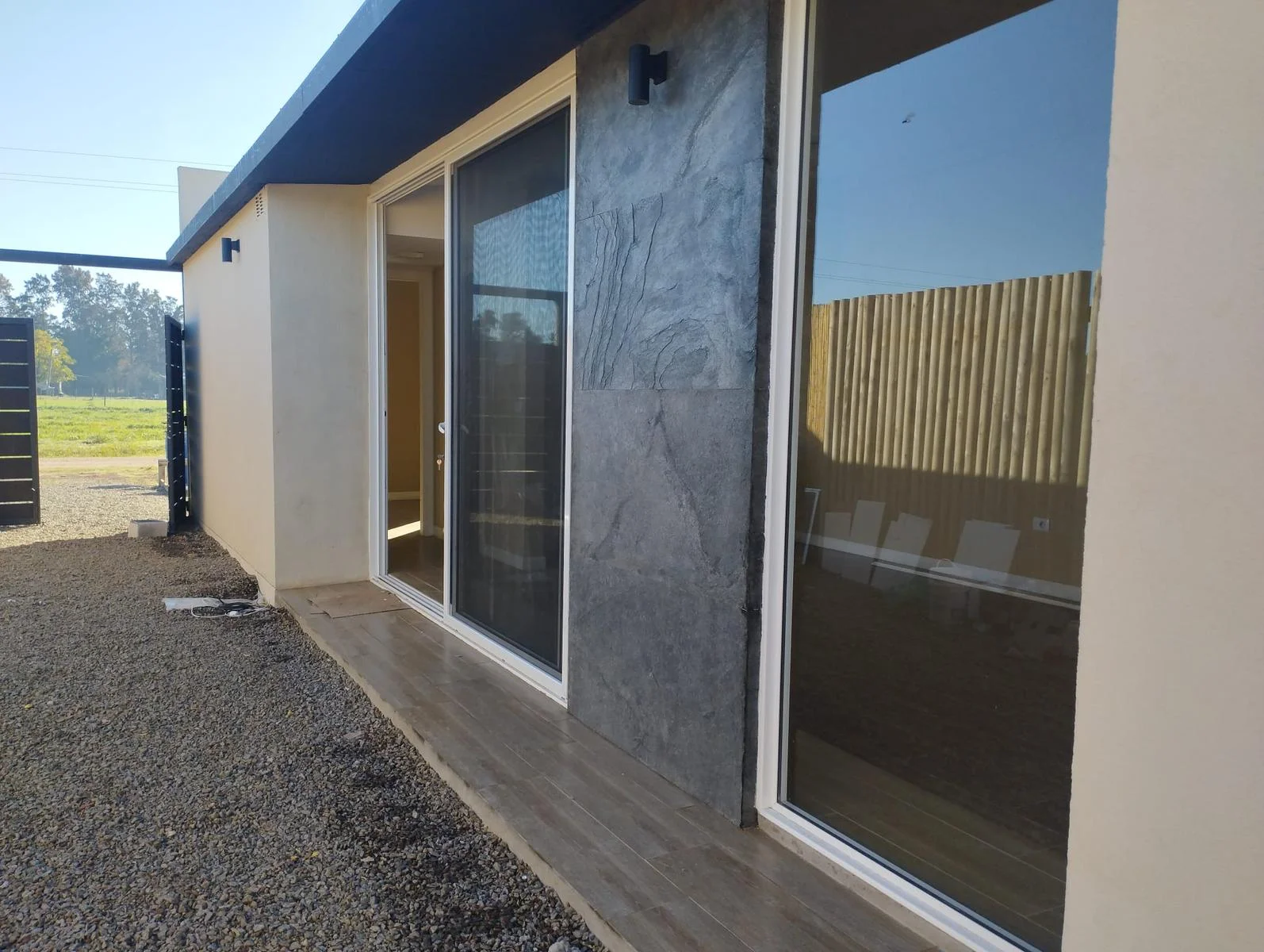Hermosa propiedad a estrenar ubicada en la zona Norte de la ciudad de Carmelo, con frente a calle Chile y a solo metros de la continuación de Av. Italia, una inmejorable ubicación para aquellos que buscan tranquilidad y una inversión en una zona que esta en constante crecimiento, esta propiedad cuenta con 2 dormitorios, uno en cada extremo de la casa, 1 baño y una cocina/living/comedor integrado super iluminada debido a sus amplios ventanales, ademas de tener una entrada para vehículos, con posibilidad de poner un alero y un lindo patio, completamente cercado al fondo y laterales.